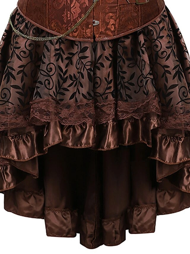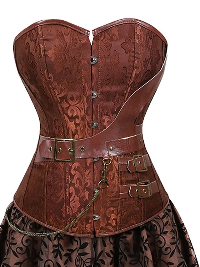 Corset Women’s Corsets Prom Party & Evening Club Brown Spandex Gothic Overbust Corset Corset Set Hook & Eye Backless Tummy Control Pure Color Fall Winter