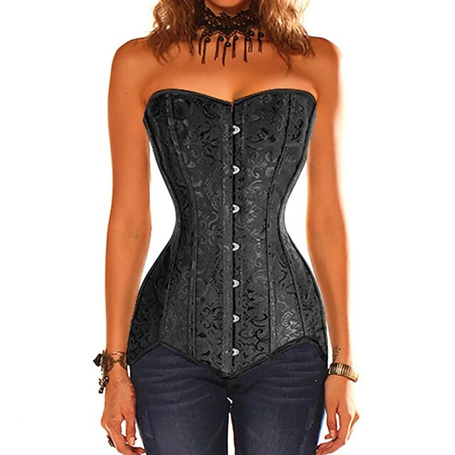 Corset Women’s Corsets Trachtenmieder Halloween Prom Party & Evening Club Black White Sexy Country Bavarian Buckle Lace Up Backless Retro Tummy Control Flower Summer Spring