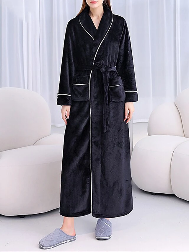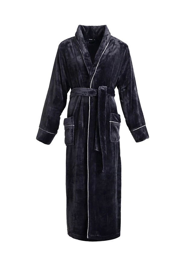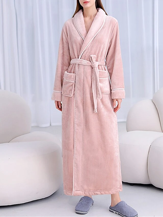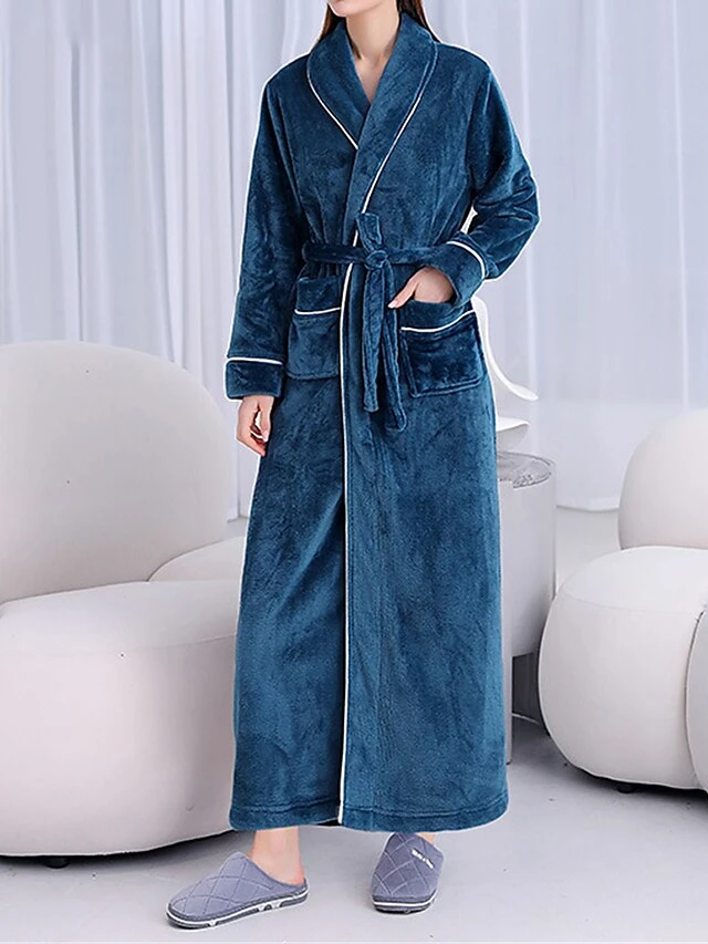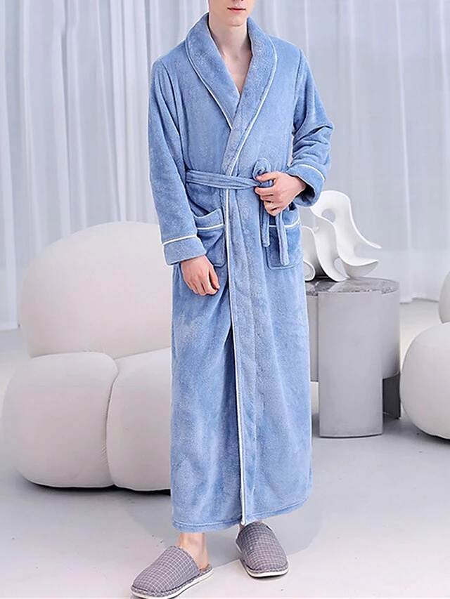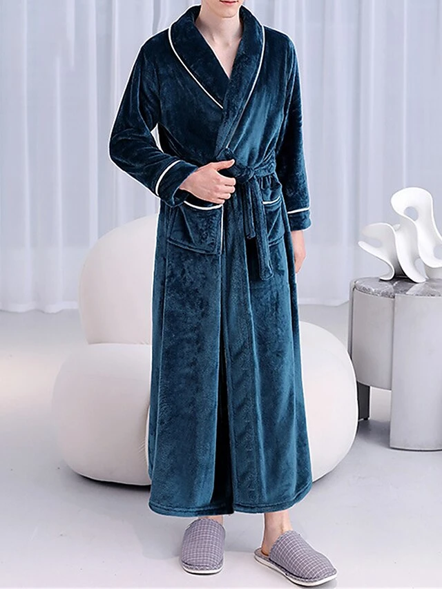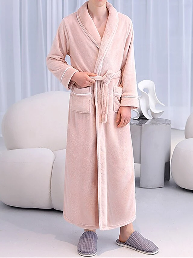 Couple‘s Flannel Bathrobe Pajamas Patchwork Warm Simple Plush Home Bed Warm Breathable V Wire Long Sleeve Pocket Fall Winter