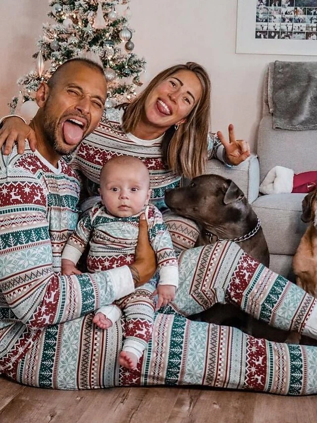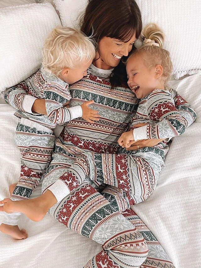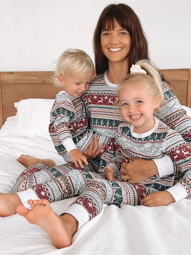 Matching Family Christmas Pajamas Sets Elk Snowflake Casual Comfort Soft Home Christmas Bed Cotton Blend Breathable Gift Crew Neck Long Sleeve T Shirt Tee Pant Fall Winter Gray