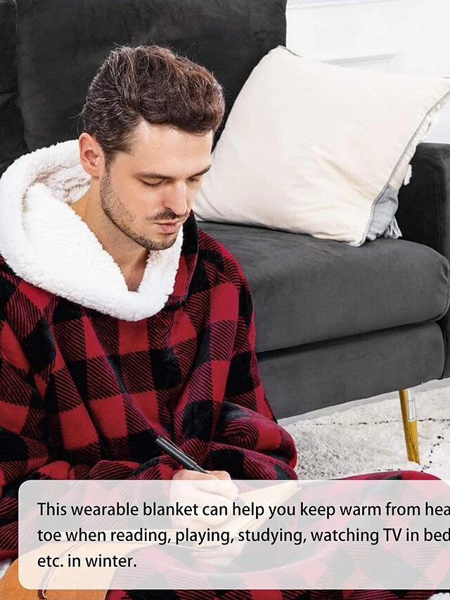 Oversized Wearable Blanket Christmas Flannel Thick Soft Warm Long Hoodie Blanket Big Hooded Sweatshirt Hoodie Blanket For Adults Women Girls Teenagers Teens Men Black