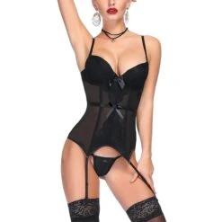 – The corset lingerie features delicate lace and curve-enhancing boning for a perfect fit.