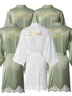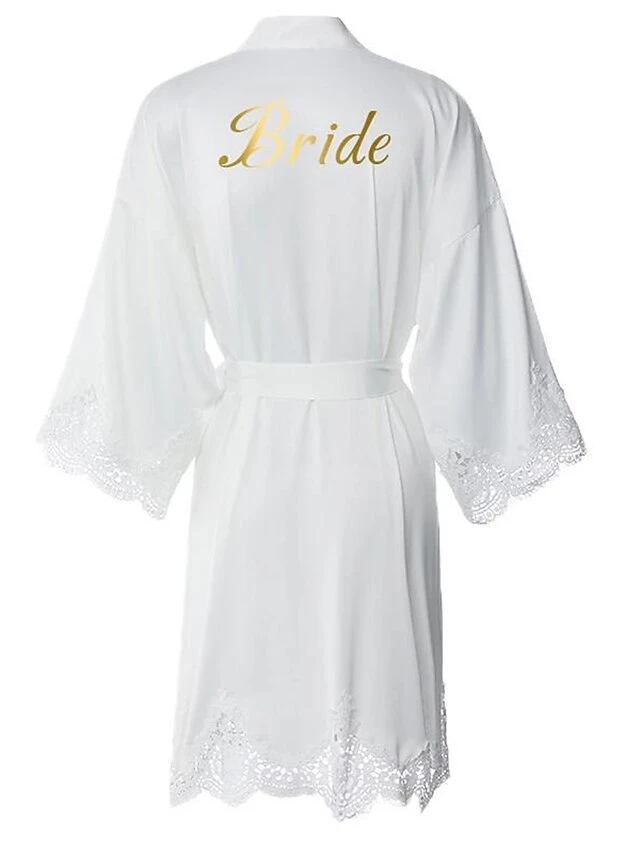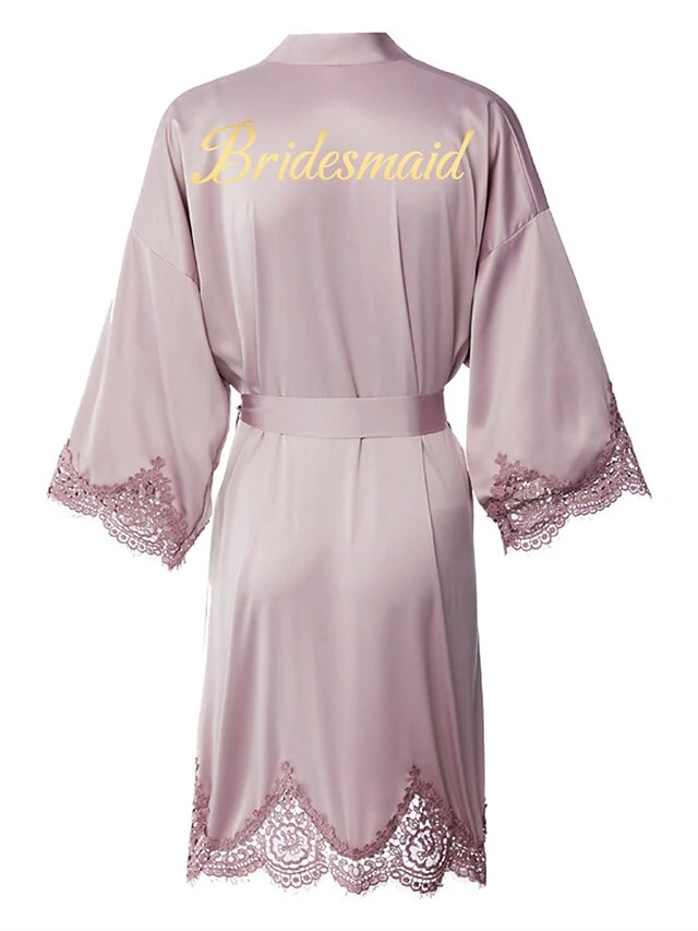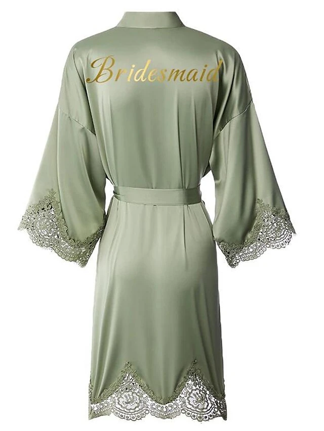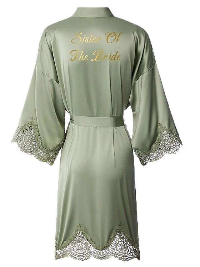 Women’s Bathrobe Robes Gown Sleep Shirt Letter Fashion Casual Comfort Wedding Party Satin Breathable V Wire Fall Winter White Bride Sage Bridesmaid