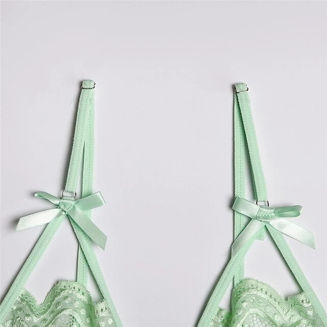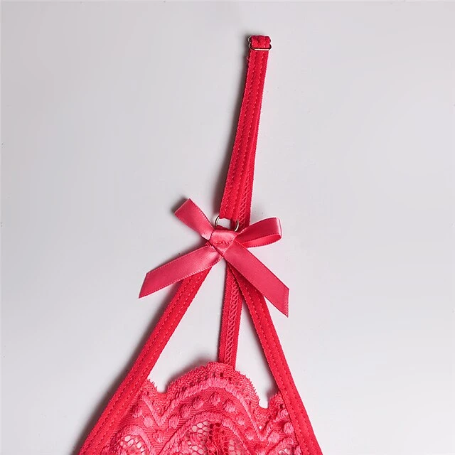 Women‘s Christmas Lingeries Gift Lace Bras Fixed Straps Sheer Bras Triangle Cup V Neck Breathable Lace Hook & Eye Date Casual Daily Xmas Sexy 1 Set White Black / Bra & Panty Set