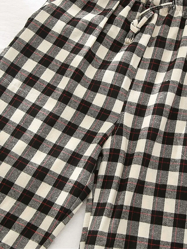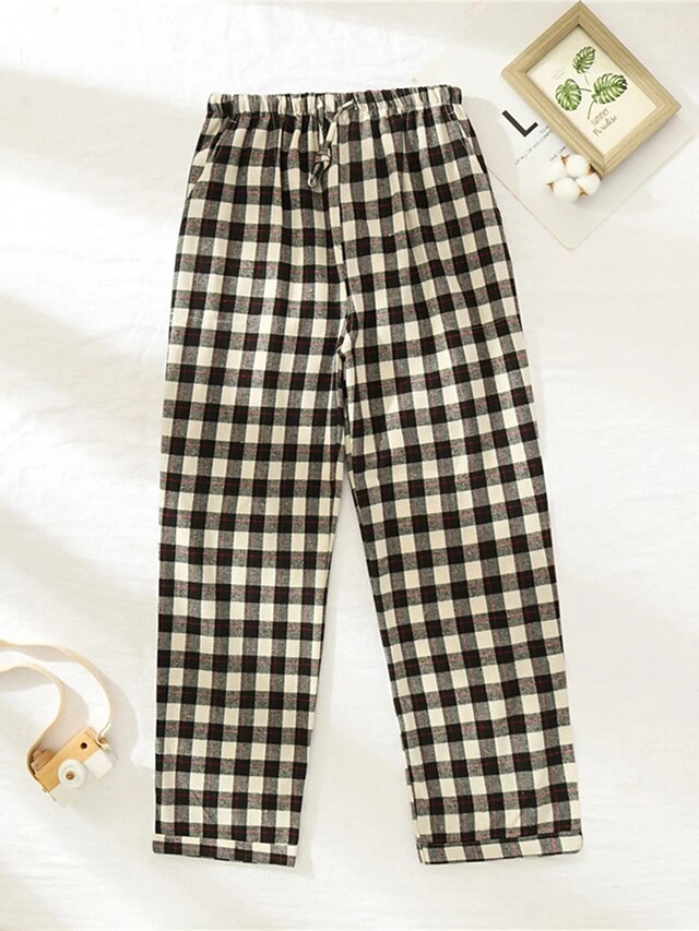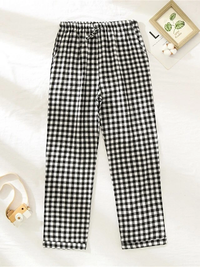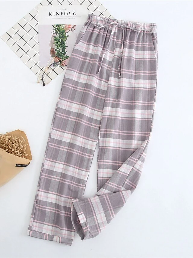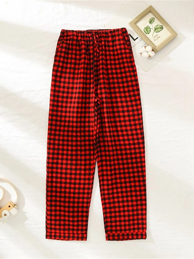 Women’s Christmas Lounge Pants Grid / Plaid Simple Casual Xmas Comfort Cotton Breathable Pant Pocket Elastic Waist Fall Winter Pink Plaid Black And White Plaid