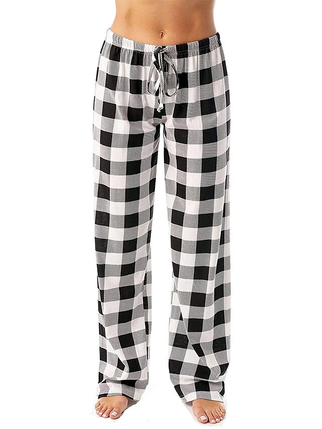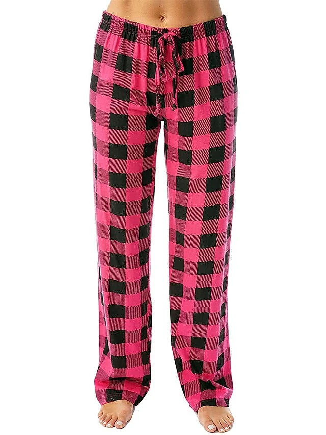 Women’s Christmas Pajama Pant Grid / Plaid Fashion Simple Comfort Home Xmas Daily Flannel Comfort Pant Adjustable Fall Winter White Pink