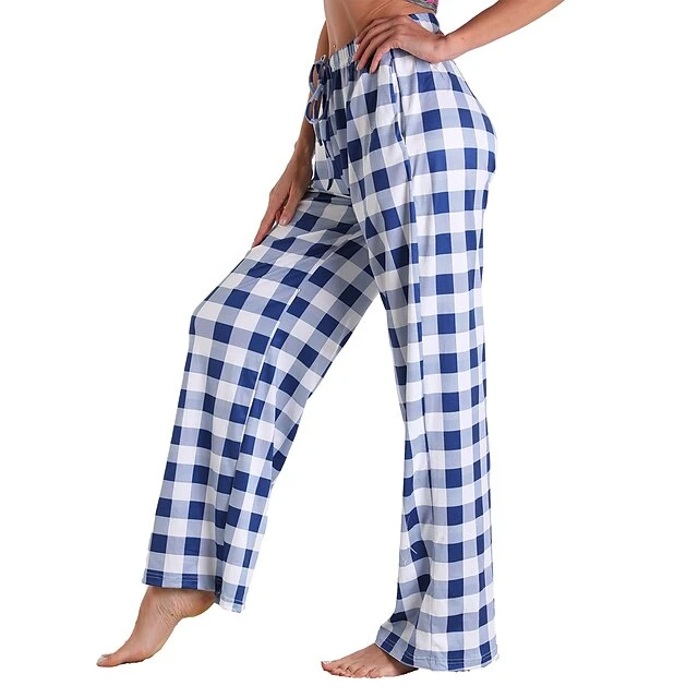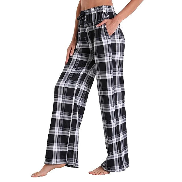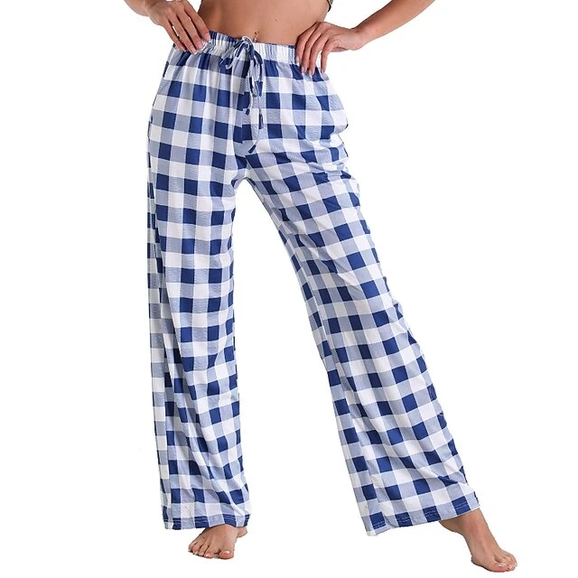 Women’s Christmas Pajamas Pants 1 PCS Grid / Plaid Fashion Comfort Sport Xmas Home Party Club Bamboo Gift Long Pant Basic Print Pocket Spring Summer Light Pink White