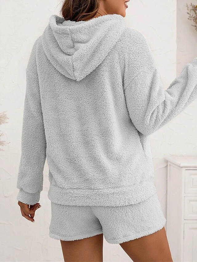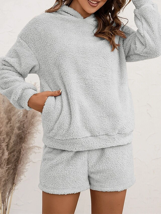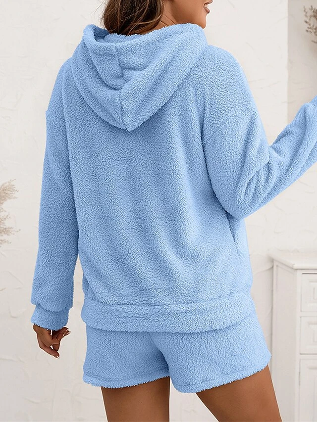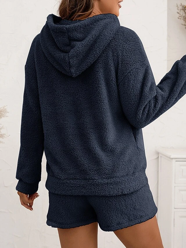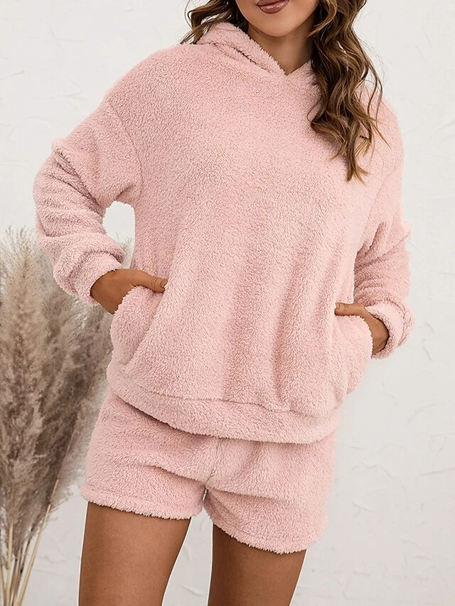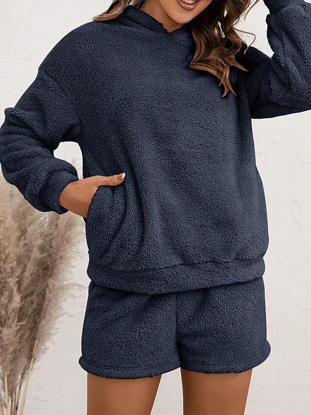 Women’s Coral Fleece Lounge Sets Pure Color Casual Comfort Soft Street Daily Vacation Coral Velvet Breathable Hoodie Long Sleeve Shorts Elastic Waist Fall Winter Pink Navy Blue