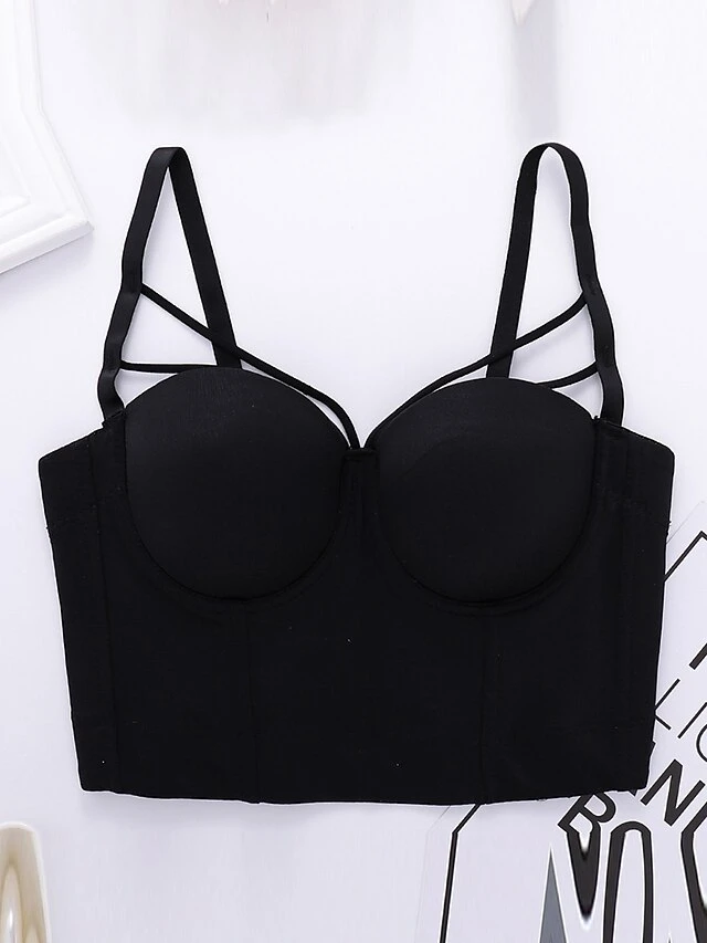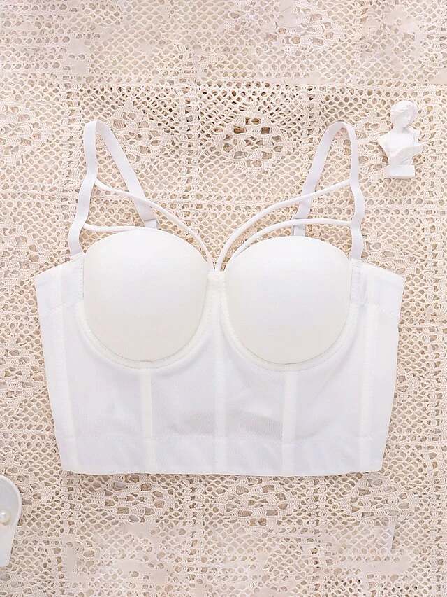 Women’s Corset Bustier Solid Comfort Home Xmas Daily Bed Polyester Breathable Straps Sleeveless Backless Summer Spring Black White
