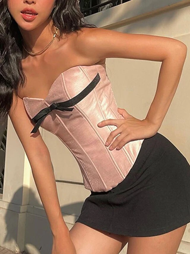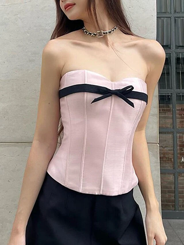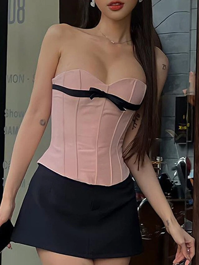 Women’s Corsets Halloween Waist Trainer Body Shaper Pure Color Fashion Hot Punk & Gothic Party Carnival Satin Breathable Bandeau Sleeveless Backless Summer Spring Pink