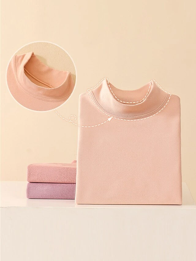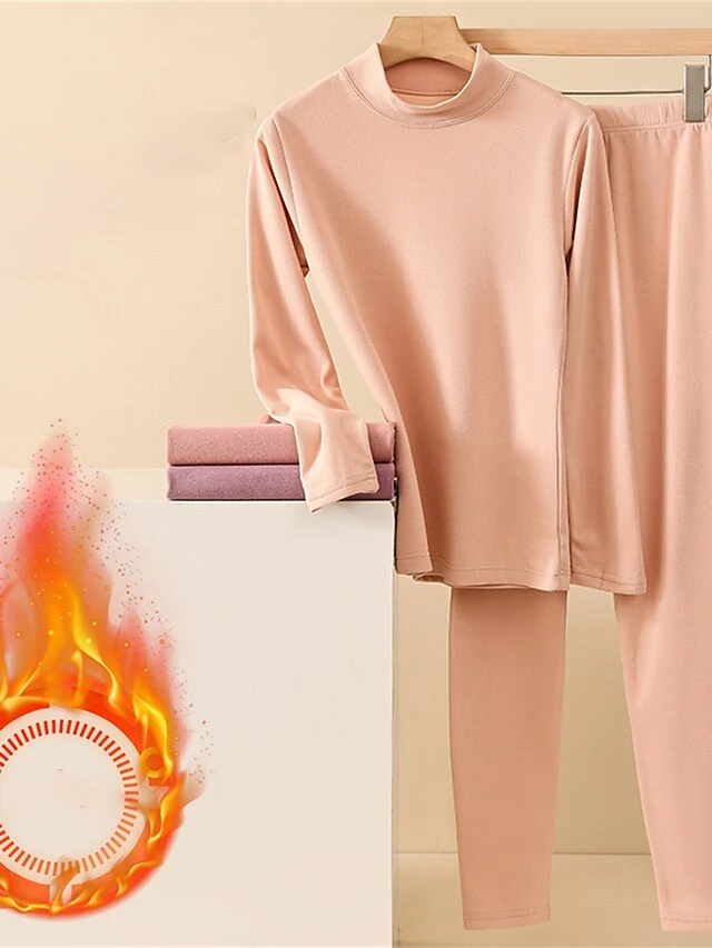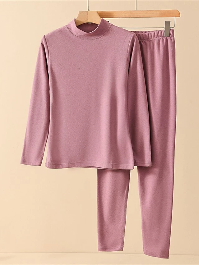 Women’s Delong Thermal Underwear Pure Color Simple Casual Comfort Home Daily Going Out Polyester Warm Stand Collar Long Sleeve Pant Elastic Waist Fall Winter Light Pink Pink