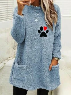 Women’s Fleece Lounge Top Light Blue Baby Blue Cartoon Casual Comfort Home Bed Polar Fleece Warm Breathable Crew Neck Long Sleeve Pullover Pocket Fall Winter Black White