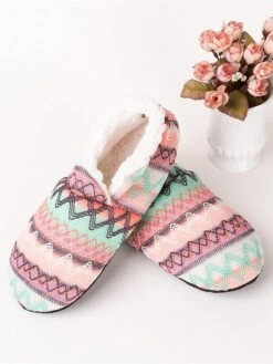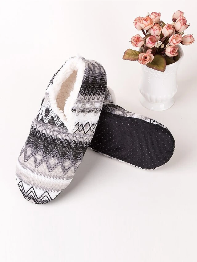 Women’s Fluffy Slipper Socks Stripe Color Combo Casual Comfort Soft Home Daily Acrylic Warm Fall Winter Black Gray Pink Green
