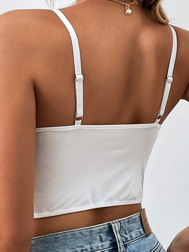 Women’s Lace Bras Fixed Straps 3/4 Cup V Neck Breathable Lace Pure Color Pull-On Closure Date Casual Daily Cotton 1PC White Black / Bras & Bralettes / 1 PC