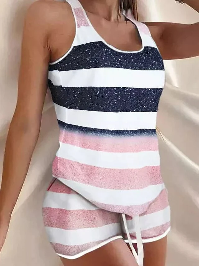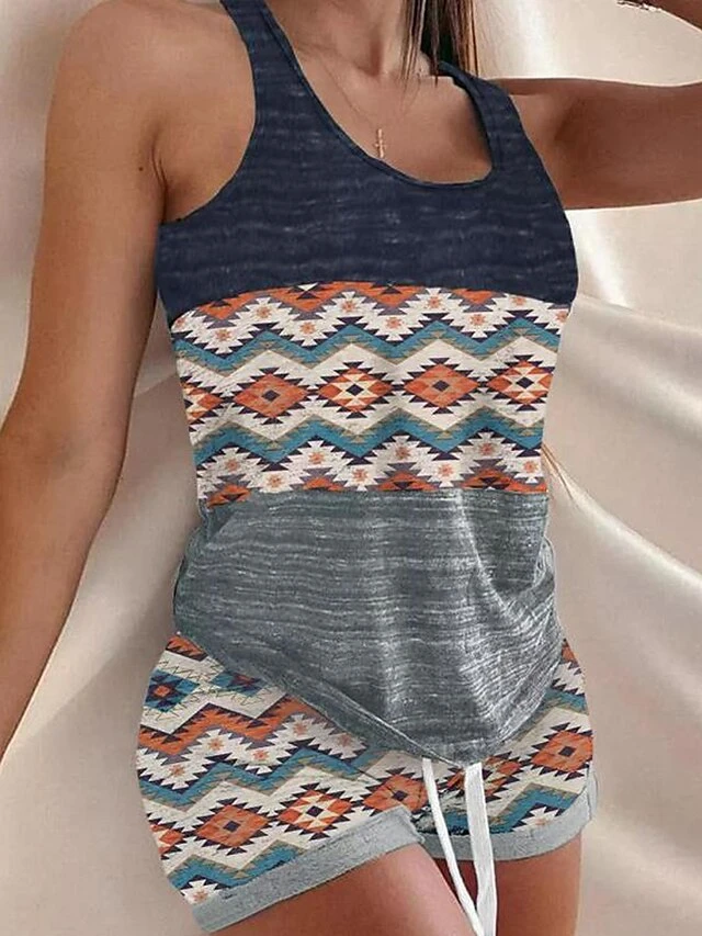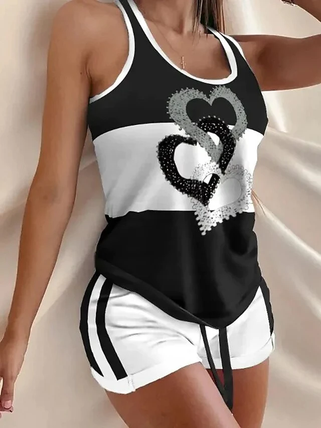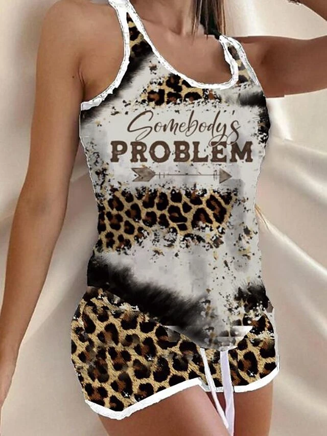 Women’s Leopard Pajamas Loungewear Sets Heart Fashion Casual Home Halloween Street Polyester Sleeveless Tank Top Shorts Elastic Waist Fall Winter Stripe Leopard Print
