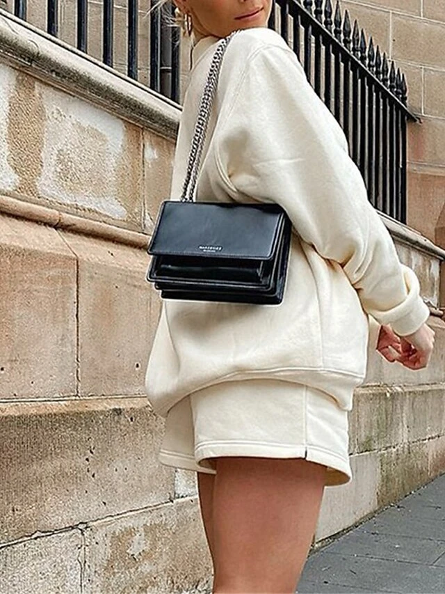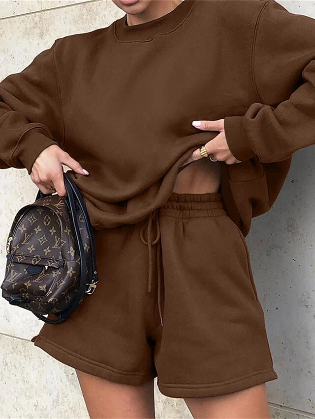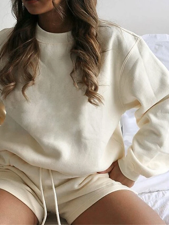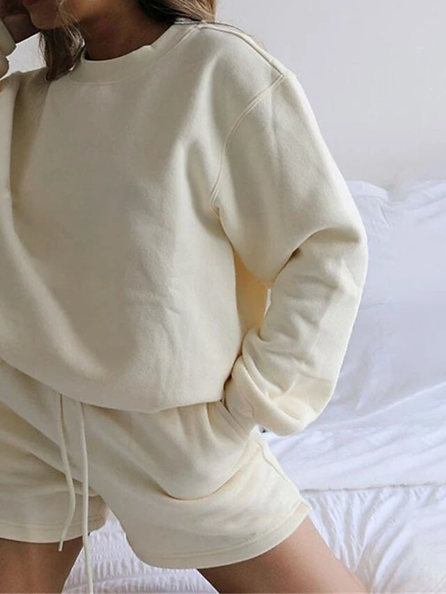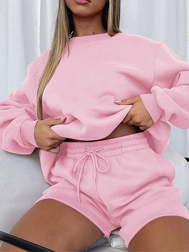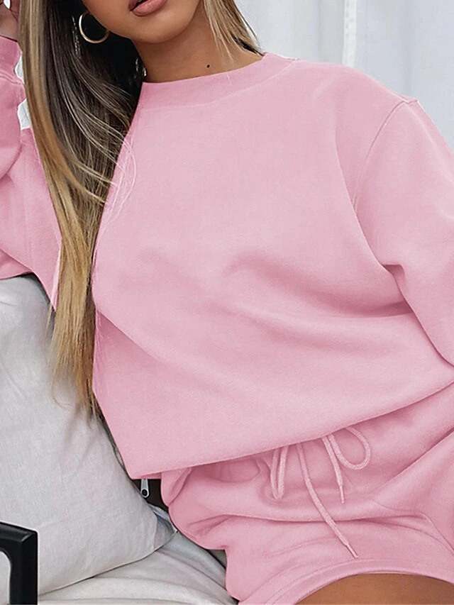 Women’s Lounge Sets 2 Pcs Sweatsuit Sweatshirt And Shorts Pure Color Fashion Casual Comfort Street Daily Date Cotton Breathable Crew Neck Long Sleeve Shorts Fall Winter Pink Blue