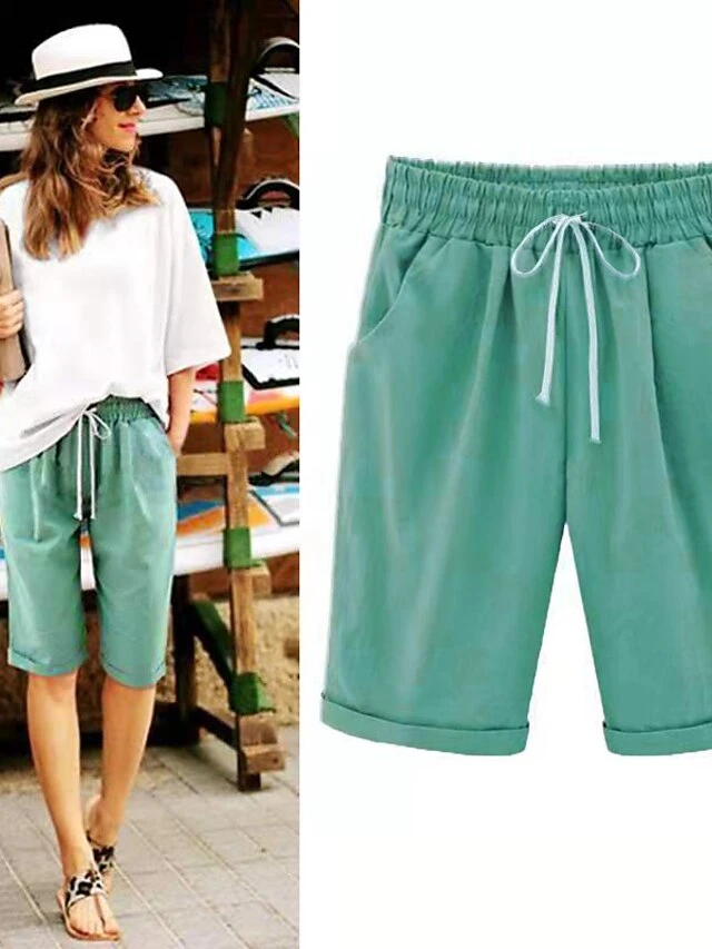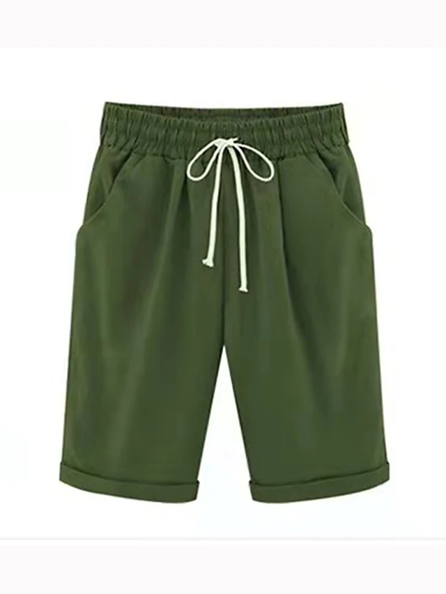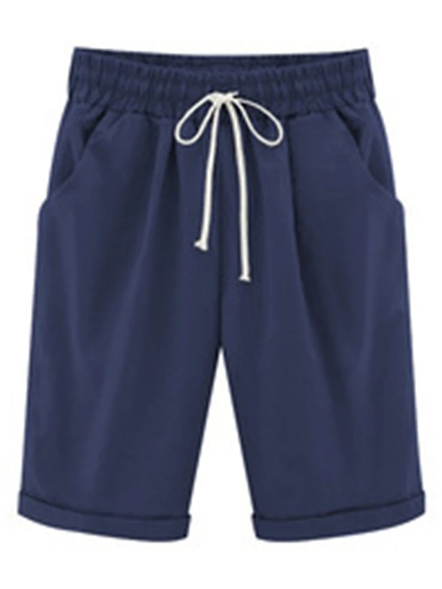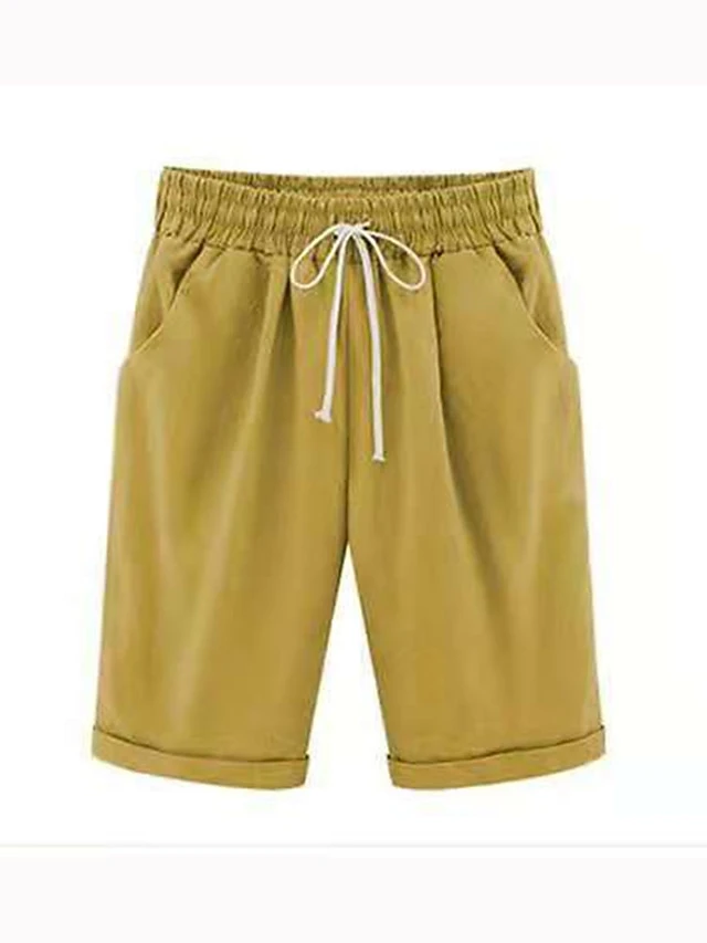 Women’s Lounge Shorts Pure Color Elastic Waist With Drawstring Simple Casual Comfort Home Daily Vacation Polyester Breathable Pocket Five-point Pants