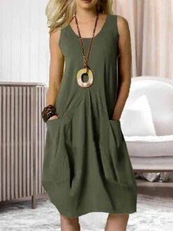 Women’s Loungewear Nightshirt Dress Pure Color Fashion Casual Soft Home Street Daily Cotton Breathable Crew Neck Sleeveless Dress Pocket Summer Spring Army Green Orange