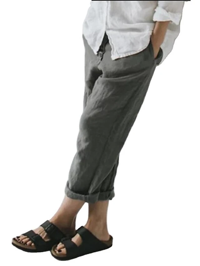 Women’s Loungewear Pants Button Baggy Trousers Pure Color Fashion Simple Casual Street Cotton And Linen Breathable With Pockets Elastic Waist Summer Spring Black Navy Blue