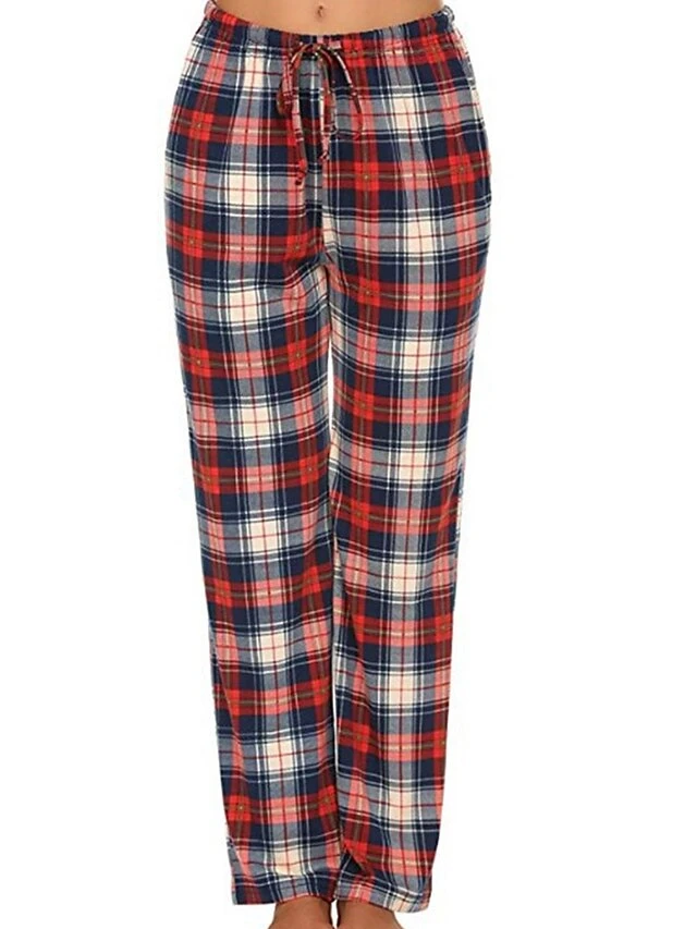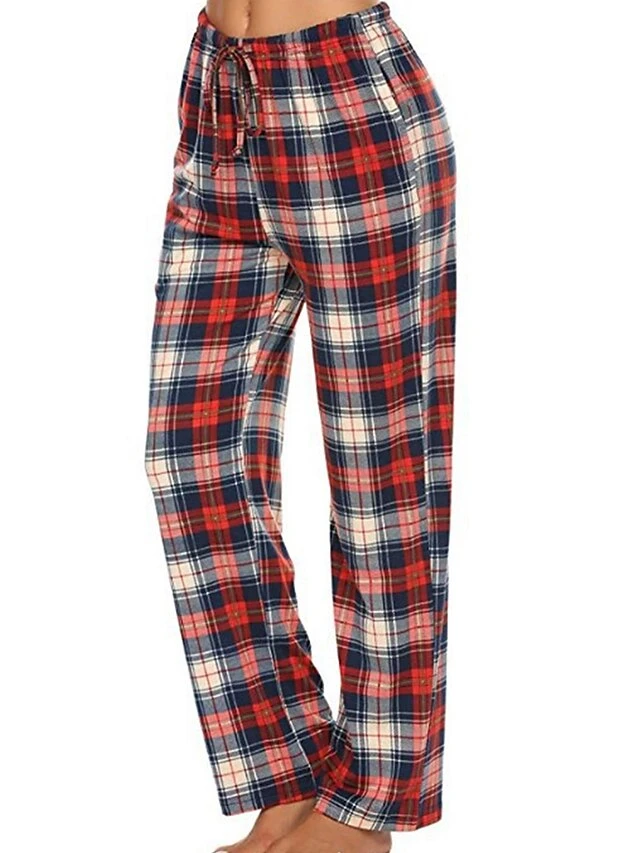 Women’s Loungewear Pants Grid / Plaid Simple Casual Comfort Home Daily Vacation Cotton Breathable Pant Pocket Elastic Waist Fall Winter Black Wine