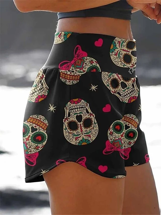 Women’s Loungewear Pants Lounge Pants Leopard Skeleton Fashion Casual Comfort Home Daily Vacation Polyester Breathable Short Pant Summer Spring Black White