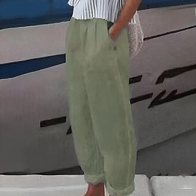 Women’s Loungewear Pants Pure Color Linen Casual Wear Plus Size For Spring Summer White Blue S 4XL