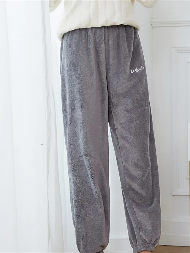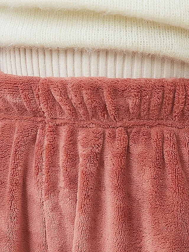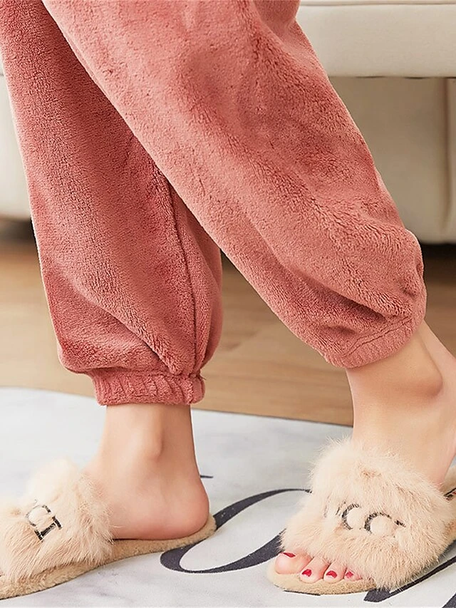 Women’s Loungewear Pants Pure Color Warm Fashion Home Daily Polyester Warm Breathable Pant Elastic Waist Fall Winter Cocoa Honey Sauce Red