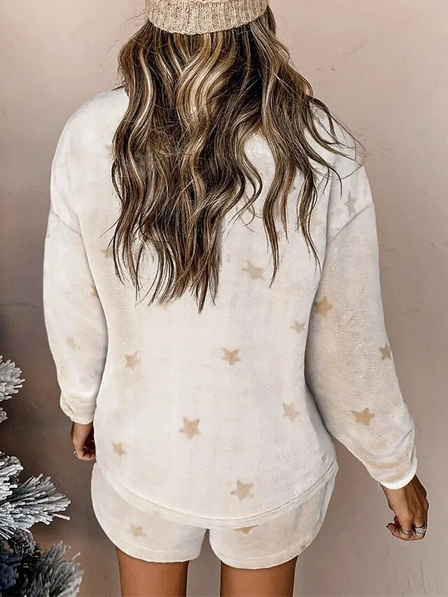Women’s Loungewear Sets 2 Pieces Star Fashion Casual Comfort Street Daily Date Polyester Warm Crew Neck Long Sleeve Shorts Fall Winter Gray