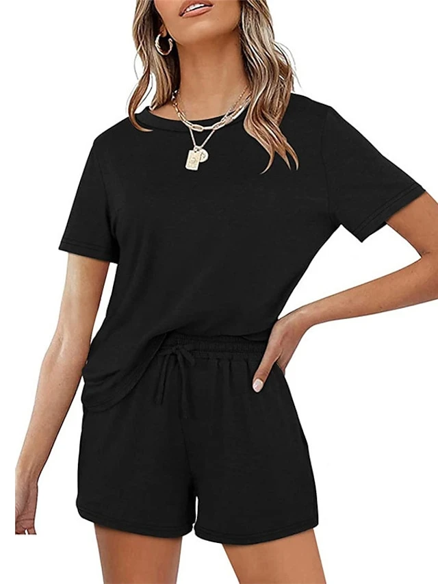 Women’s Loungewear Sets Nighty 2 Pieces Pure Color Simple Comfort Home Street Cotton Crew Neck Short Sleeve T Shirt Tee Shorts Spring Summer Green Blue