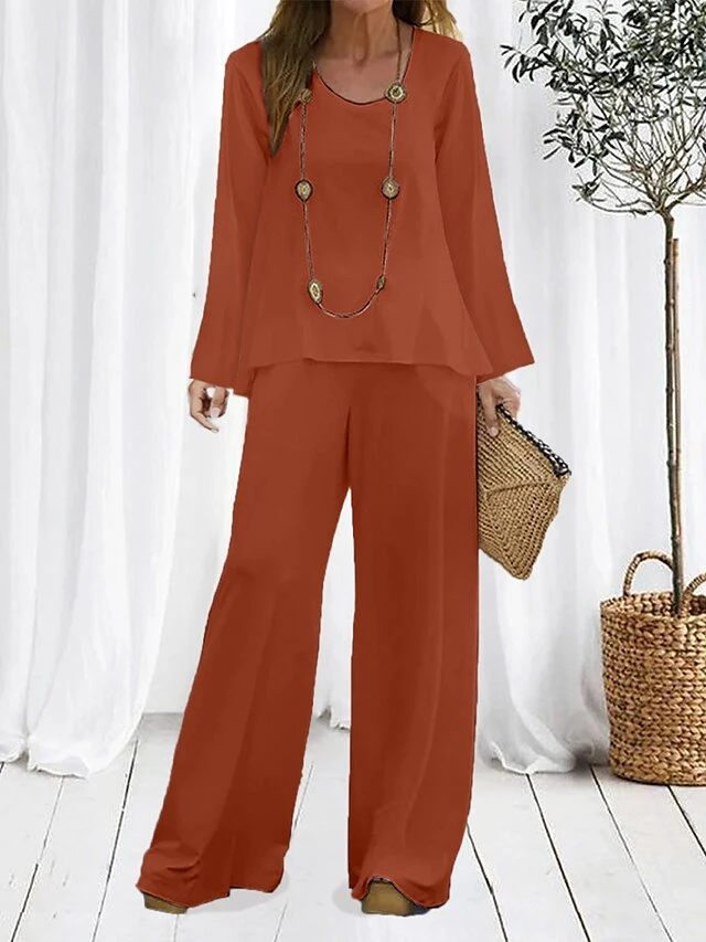 Women’s Loungewear Sets Pure Color Fashion Comfort Soft Home Daily Bed Polyester Breathable Crew Neck Long Sleeve Pullover Pant Fall Winter Black White