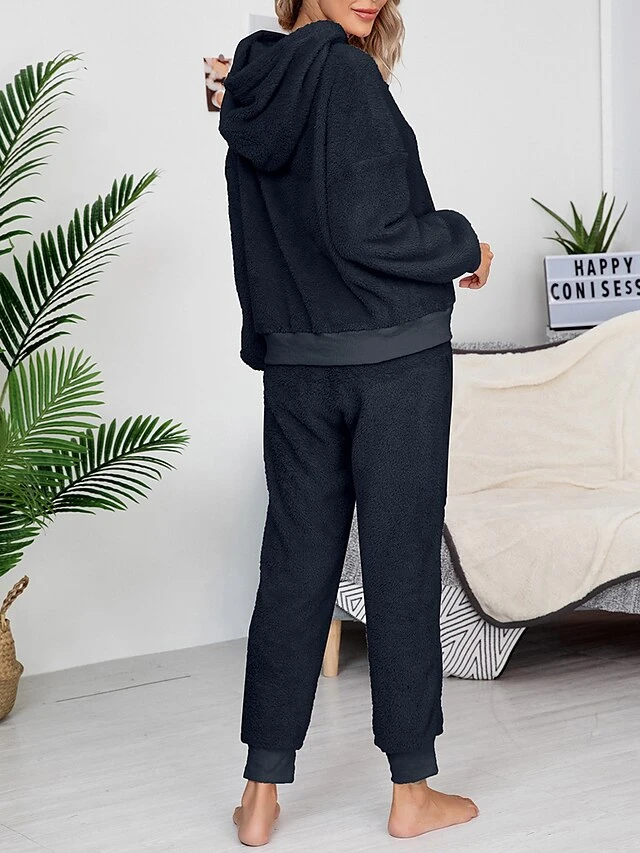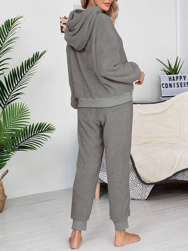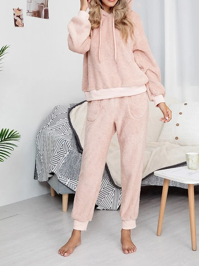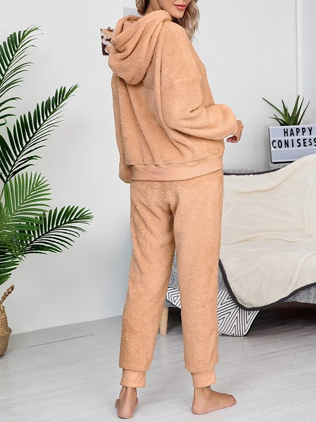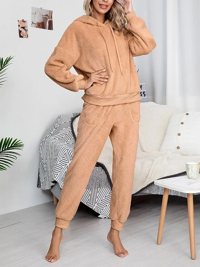 Women’s Loungewear Sets Pure Color Fashion Comfort Soft Home Daily Bed Polyester Breathable Hoodie Long Sleeve Hoodie Pant Pocket Fall Winter Pink Camel