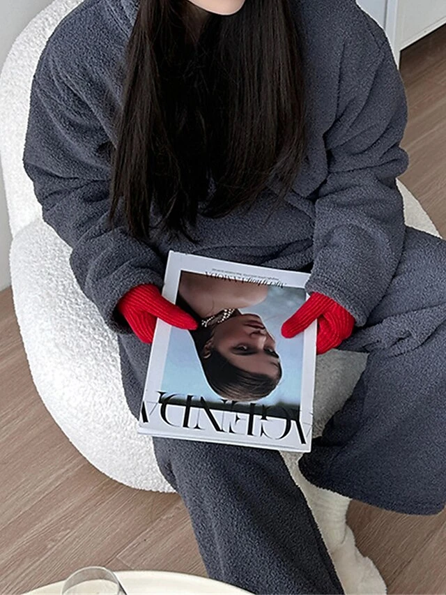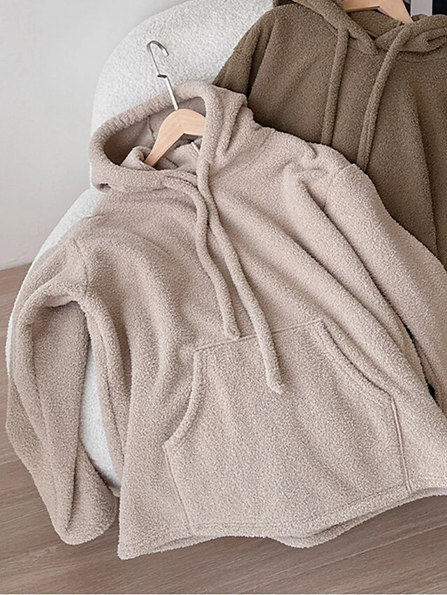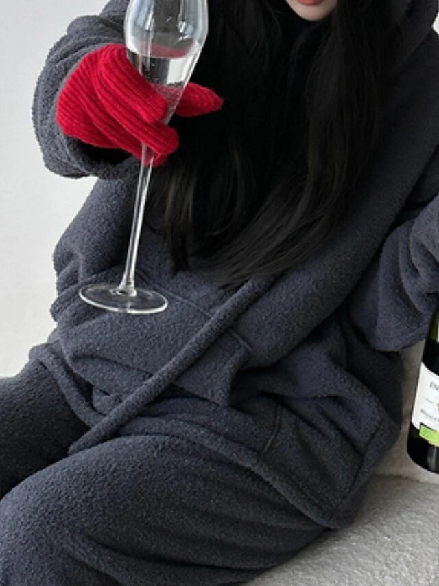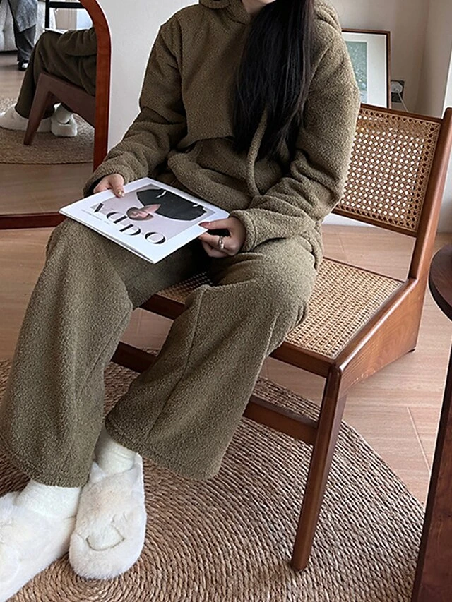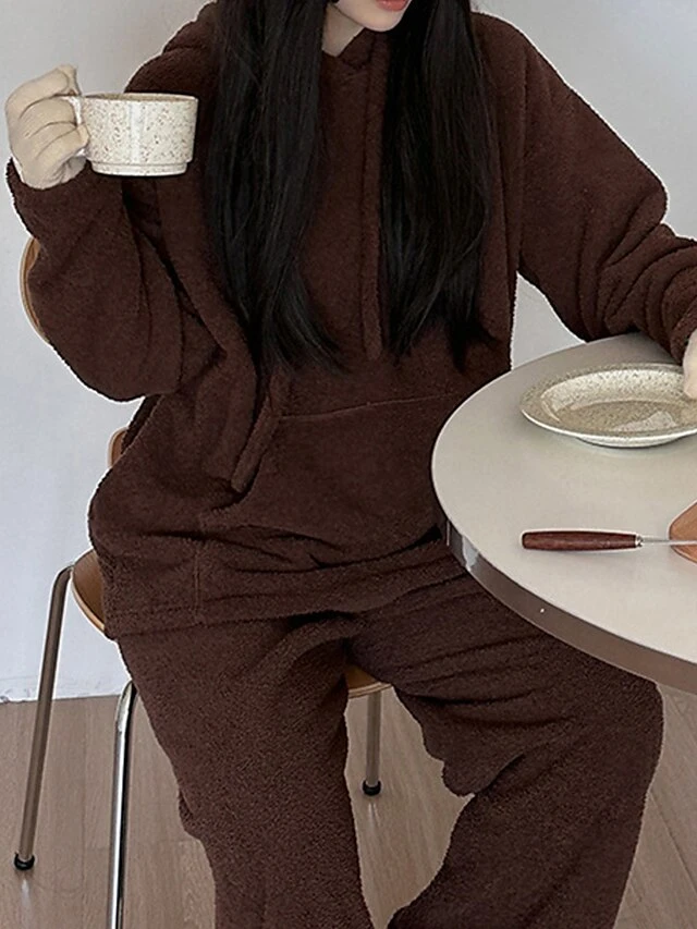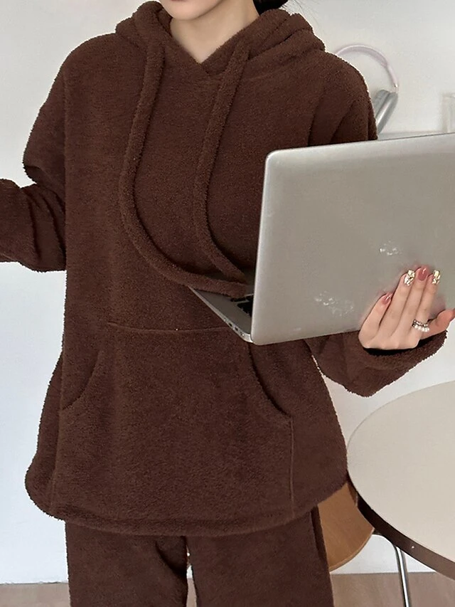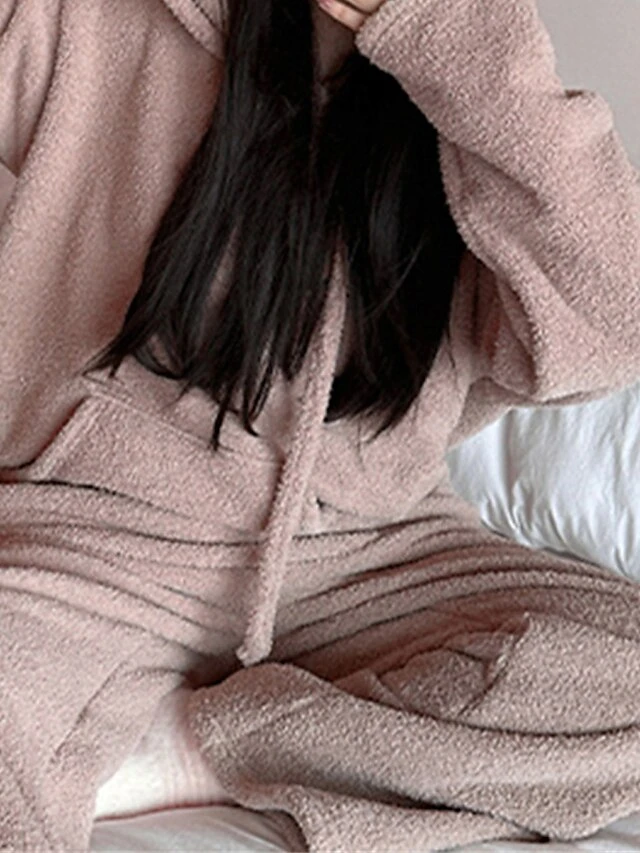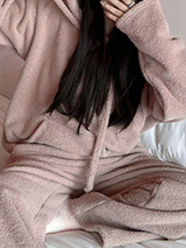 Women’s Loungewear Sets Pure Color Fashion Comfort Soft Street Daily Date Polyester Warm Breathable Hoodie Long Sleeve Pant Elastic Waist Fall Winter Pink Brown