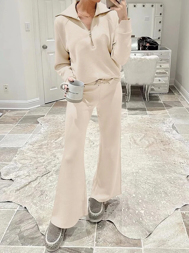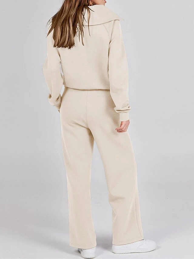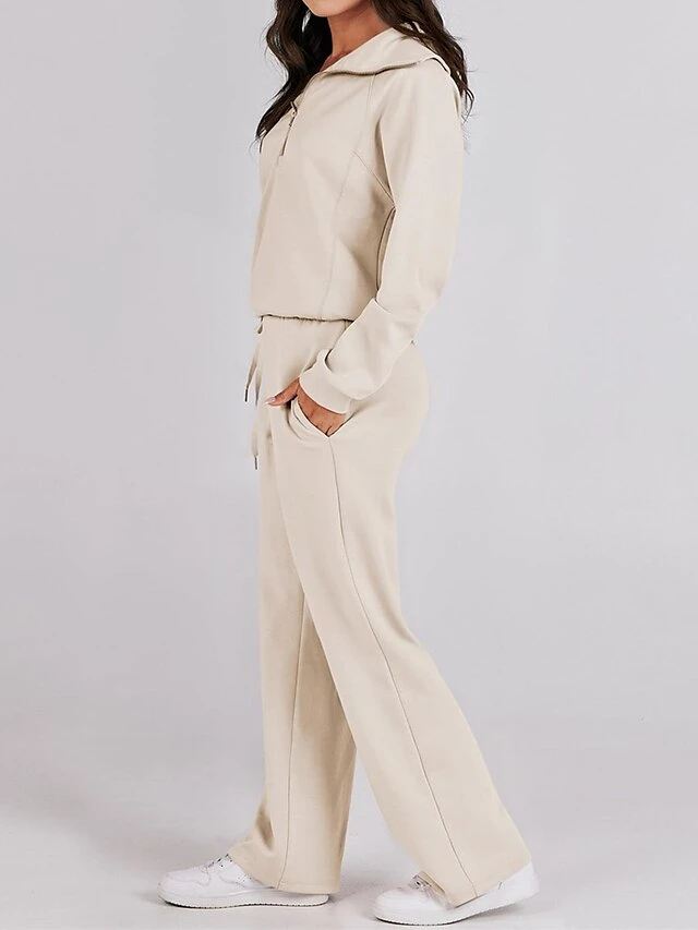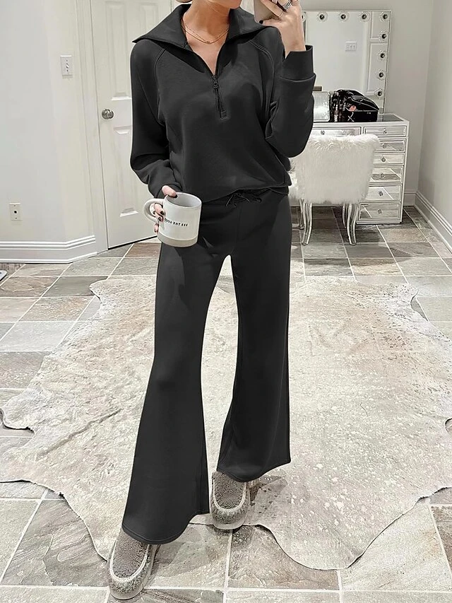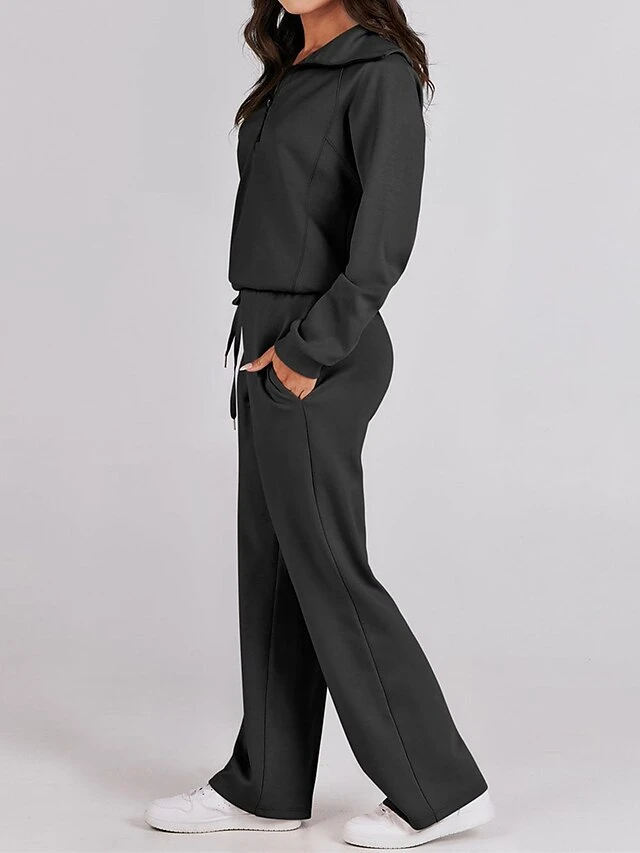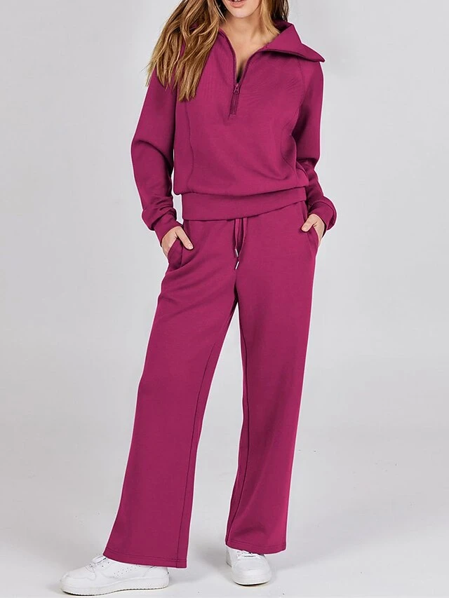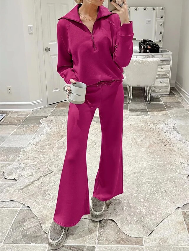 Women’s Loungewear Sets Pure Color Fashion Sport Casual Home Street Daily Polyester Breathable Lapel Long Sleeve Hoodie Pant Pocket Fall Winter Black Fuchsia
