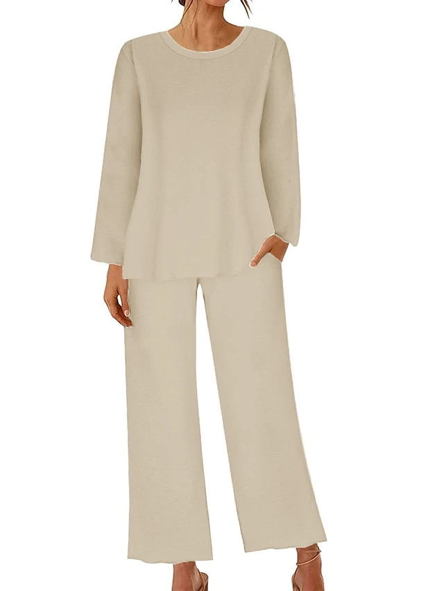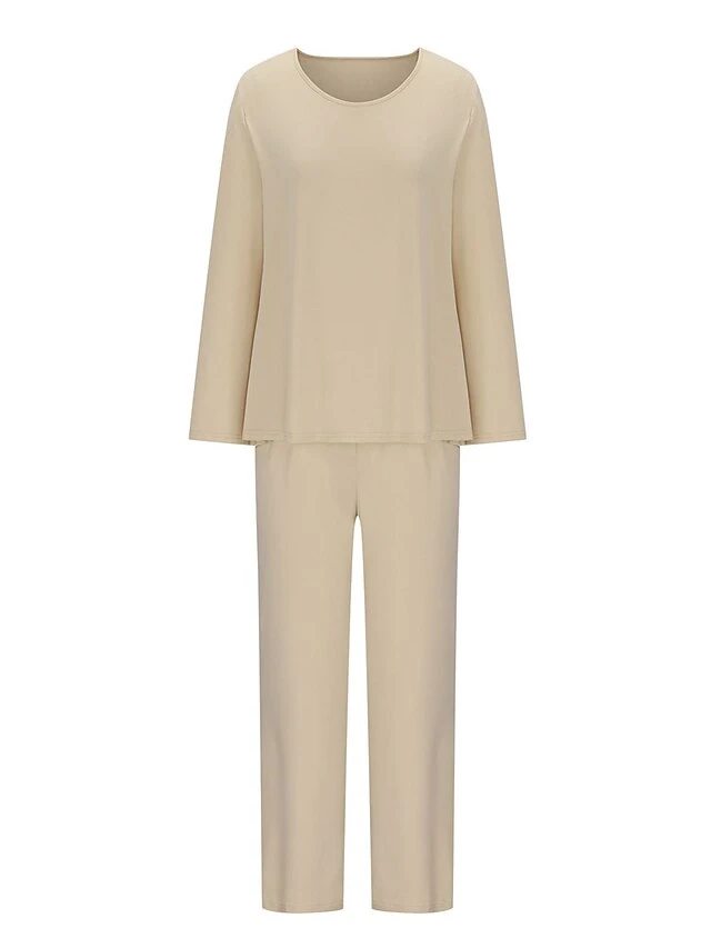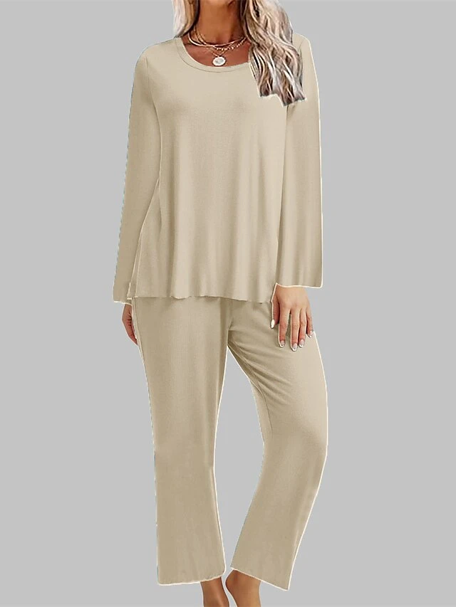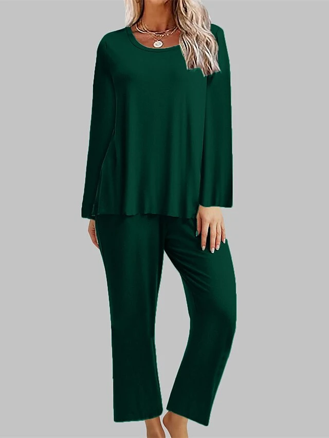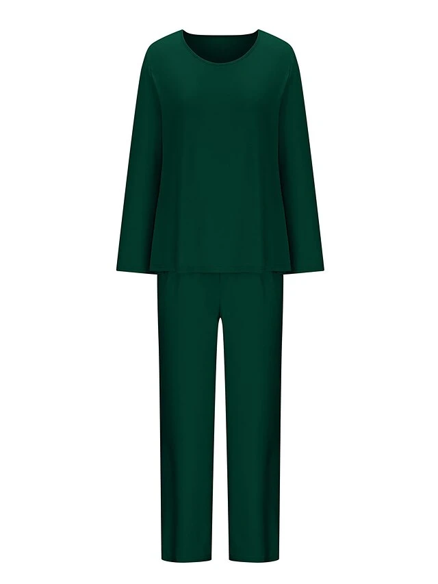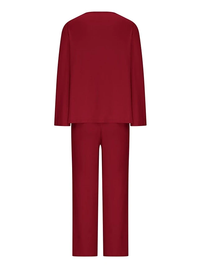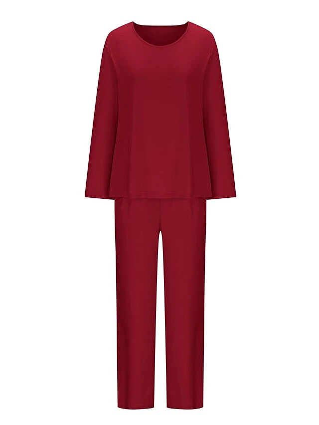 Women’s Loungewear Sets Pure Color Simple Casual Comfort Home Daily Bed Polyester Breathable Crew Neck Long Sleeve T Shirt Tee Pant Pocket Fall Winter Black Red