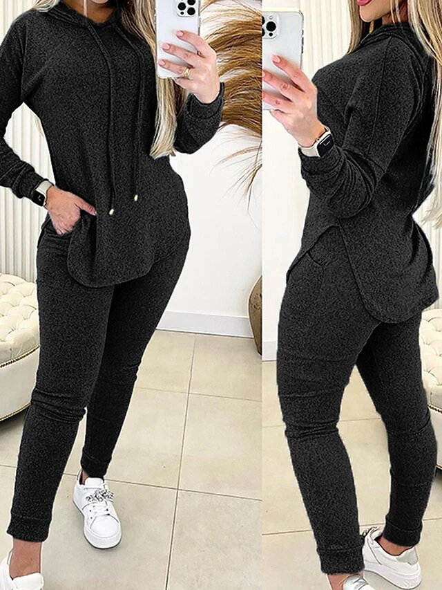 Women’s Loungewear Sets Pure Color Sport Casual Comfort Home Daily Vacation Polyester Breathable Hoodie Long Sleeve Hoodie Pant Pocket Fall Winter Black Light Green