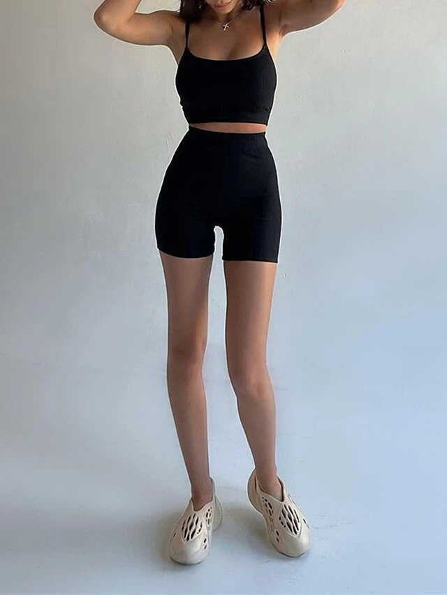 Women’s Loungewear Sets Pure Color Sport Hot Casual Home Daily Going Out Polyester Breathable Straps Sleeveless Strap Top Shorts Backless Summer Fall Black White