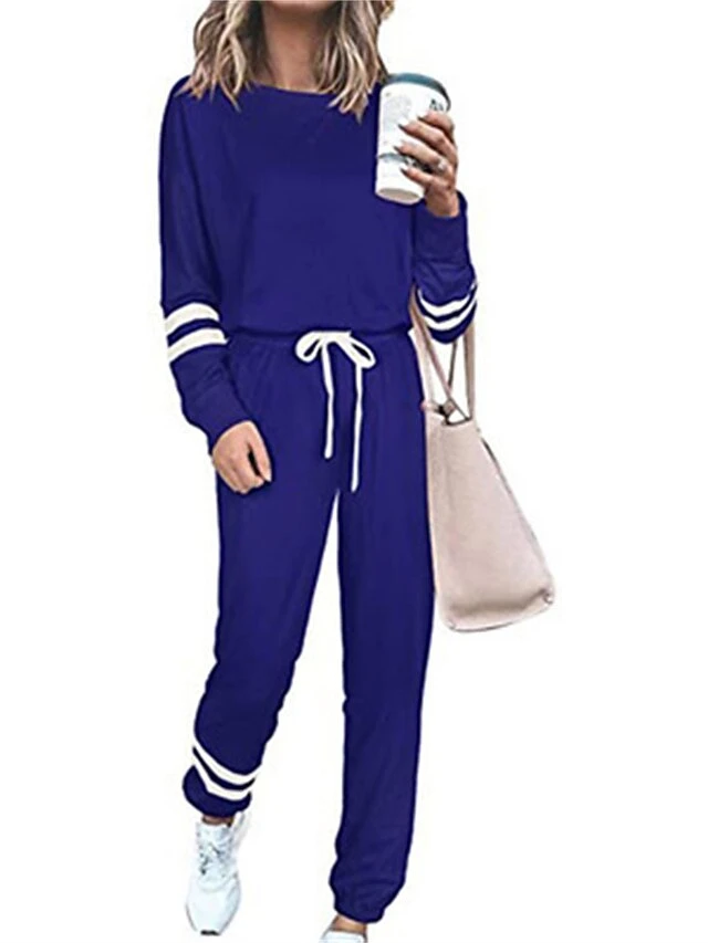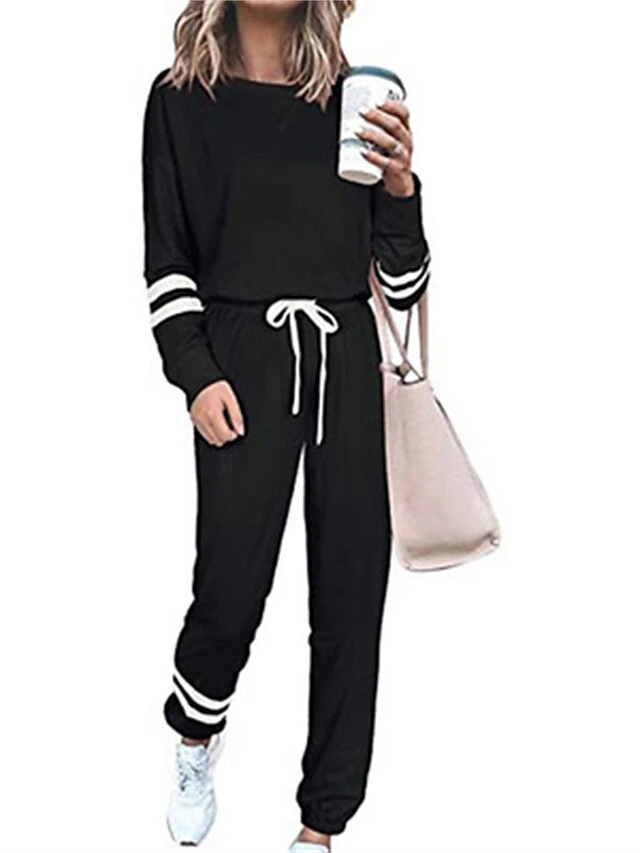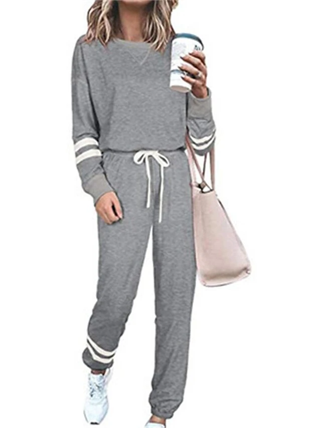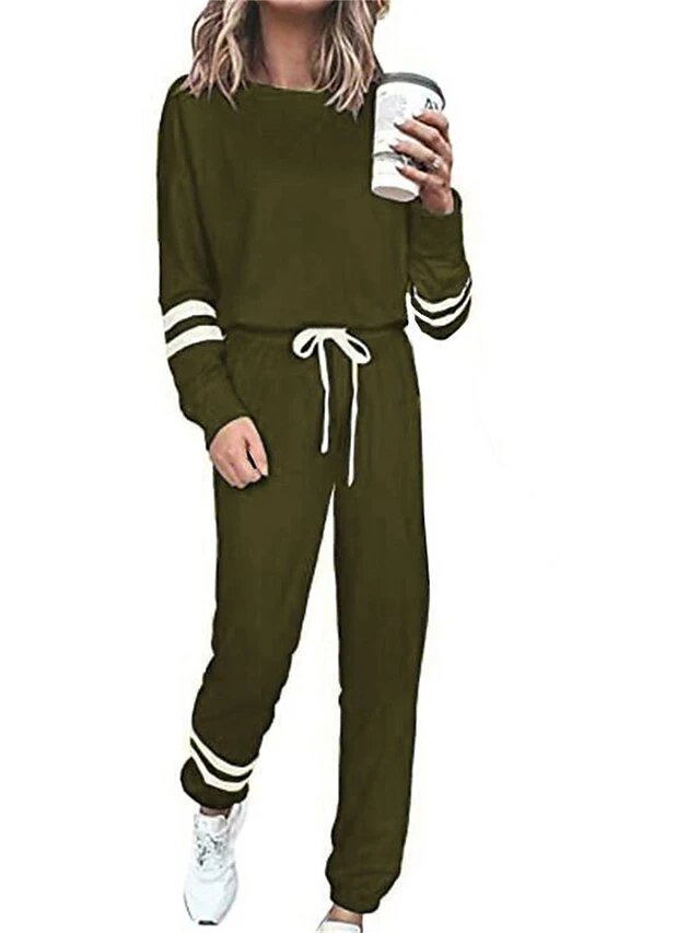 Women’s Loungewear Sexy Lingerie Sets Stripe Sport Casual Comfort Home Daily Bed Cotton Blend Breathable Crew Neck Long Sleeve Hoodie Pant Pocket Fall Winter Black Army Green