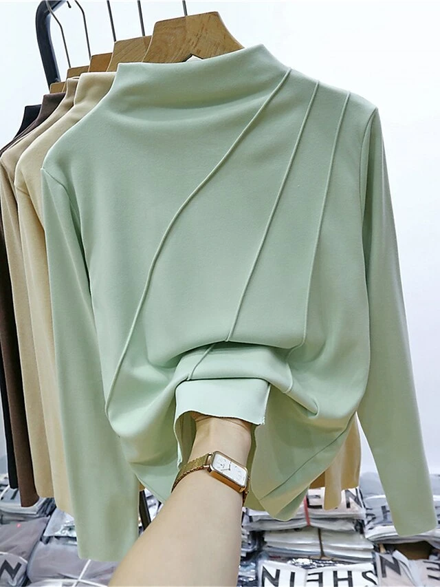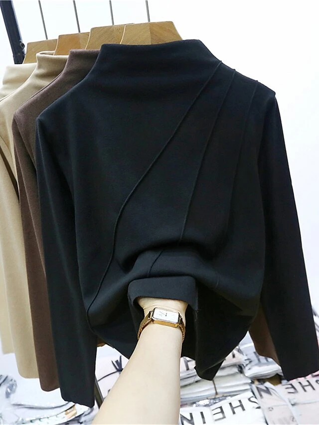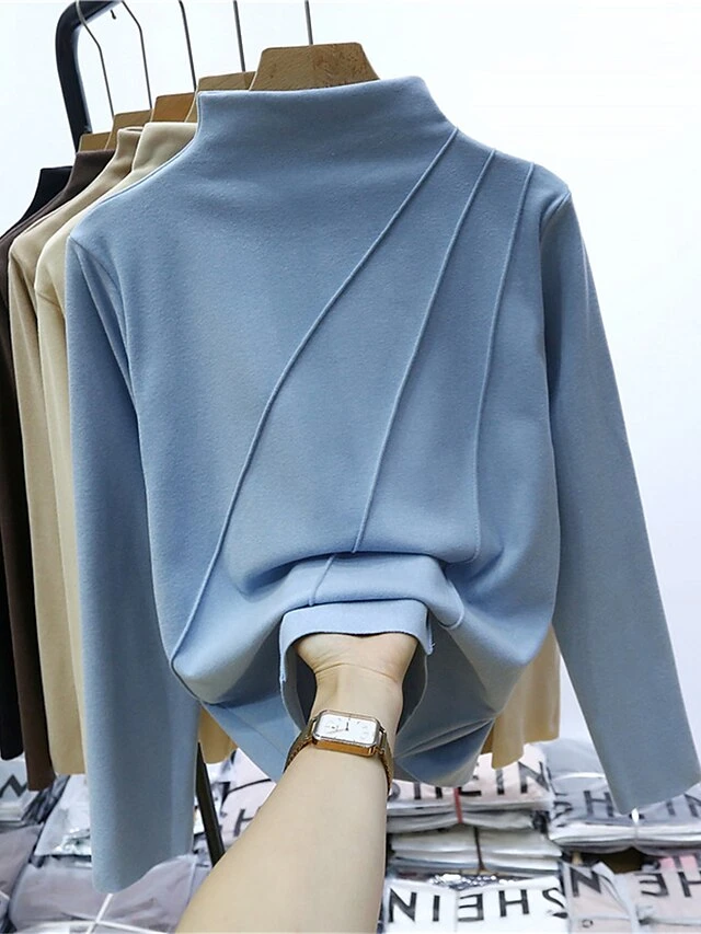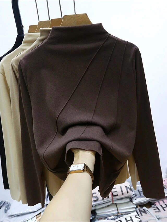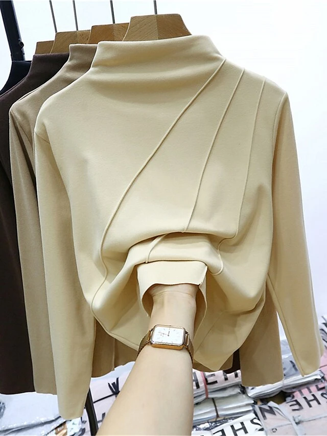 Women’s Loungewear Top Pure Color Fashion Comfort Street Date Airport Polyester Warm High Neck Long Sleeve Fall Winter Black Yellow