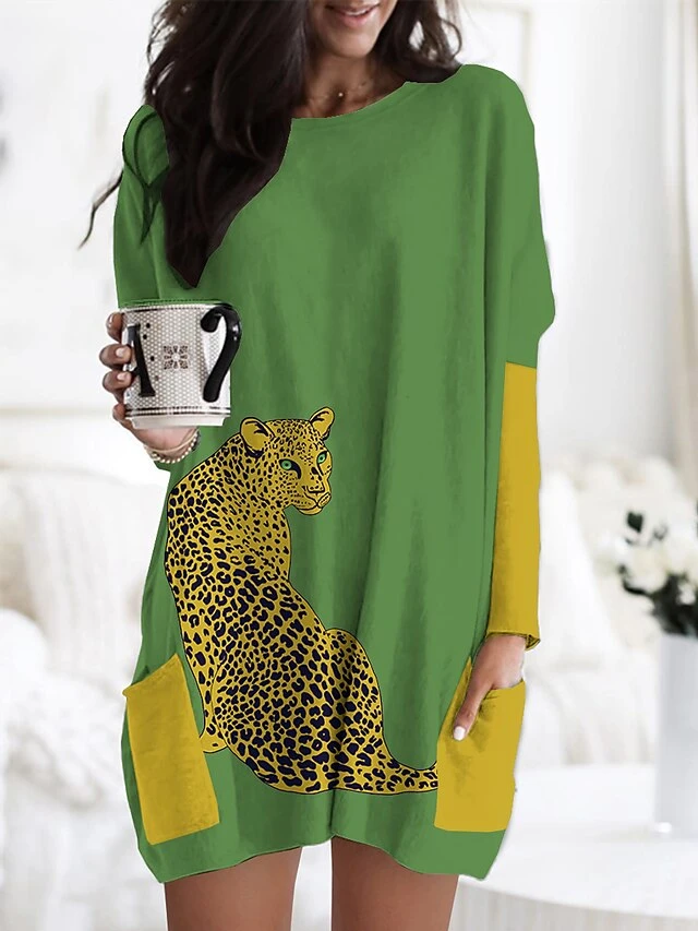 Women’s Nightgown Animal Fashion Comfort Home Daily Polyester Crew Neck Long Sleeve Pocket Fall Winter Royal Blue Green