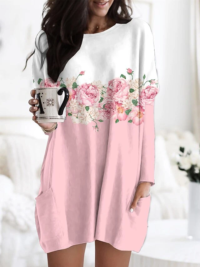 Women’s Nightgown Flower Fashion Comfort Home Daily Polyester Crew Neck Long Sleeve Pocket Fall Winter Light Pink Yellow