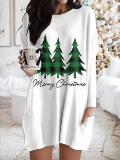 Women’s Nightgown Heart Stripe Fashion Comfort Home Daily Polyester Crew Neck Long Sleeve Pocket Fall Winter Black White