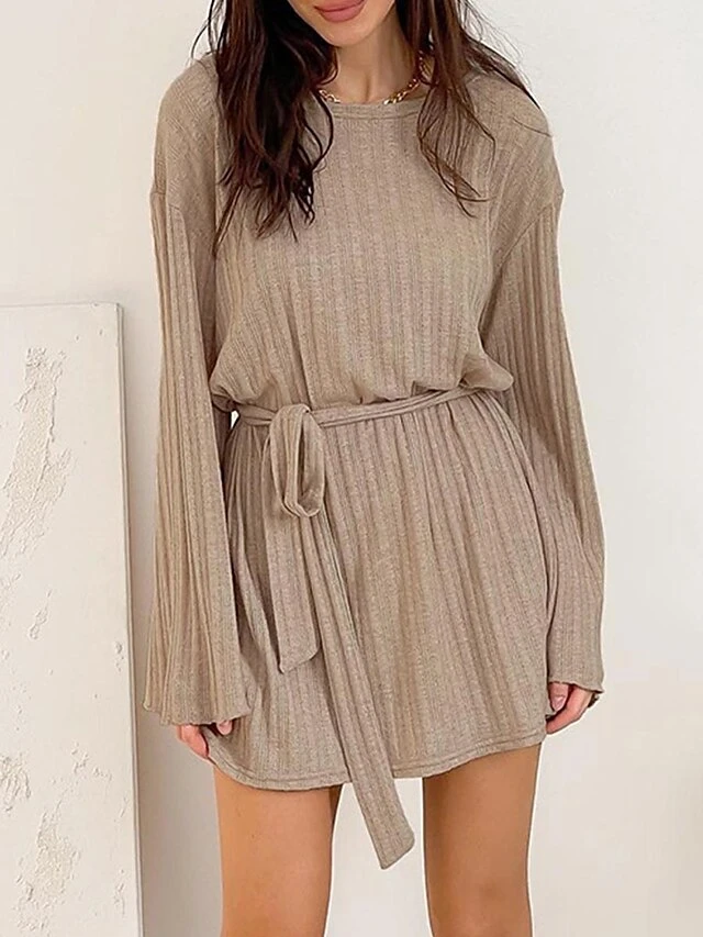 Women’s Nightgown Nightshirt Knit Dress Pure Color Simple Casual Comfort Home Daily Vacation Polyester Breathable Long Sleeve Fall Winter Brown