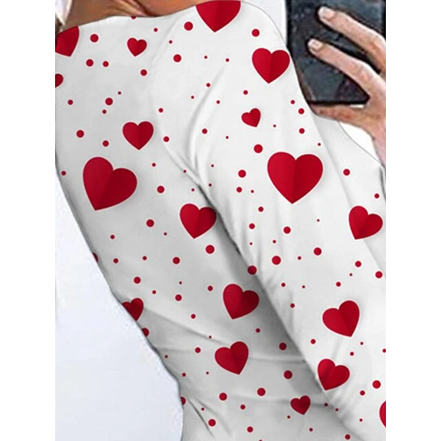 Women’s Onesie Heart Dot Hot Casual Comfort Home Daily Bed Polyester V Wire Long Sleeve Hole Fall Winter White