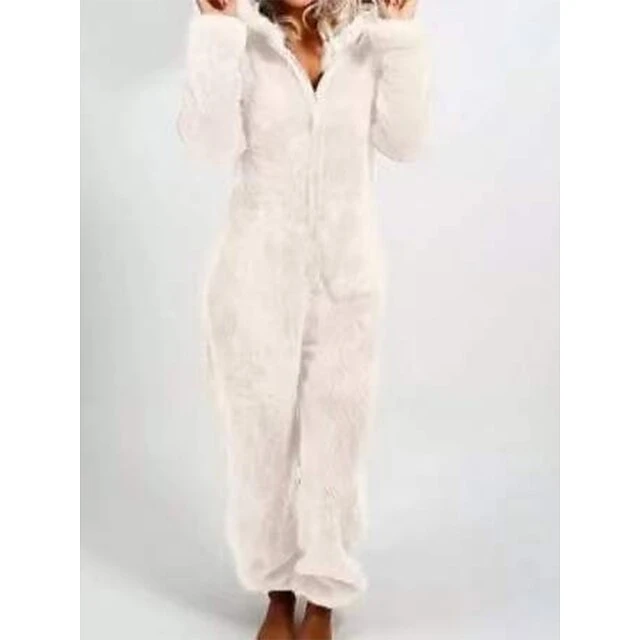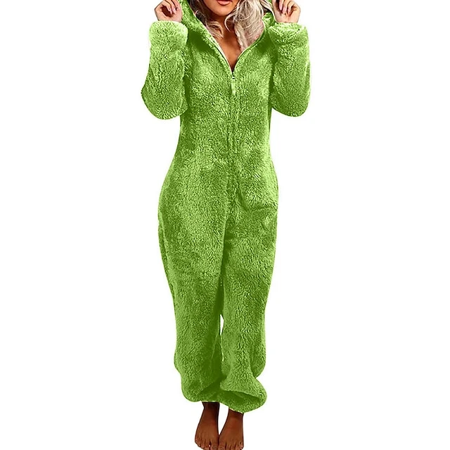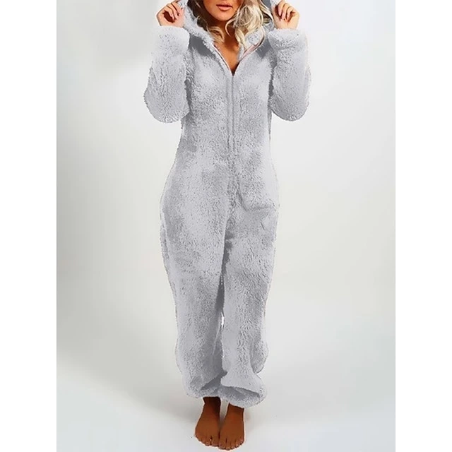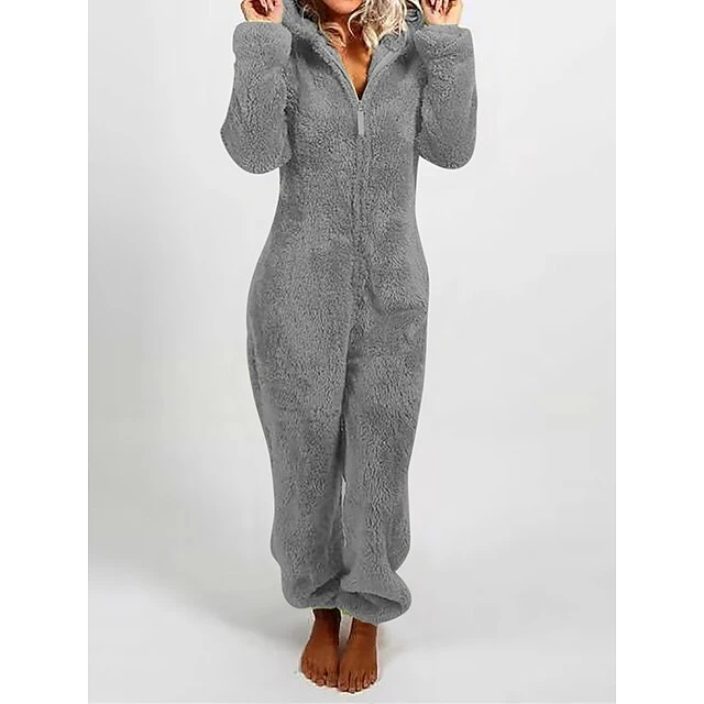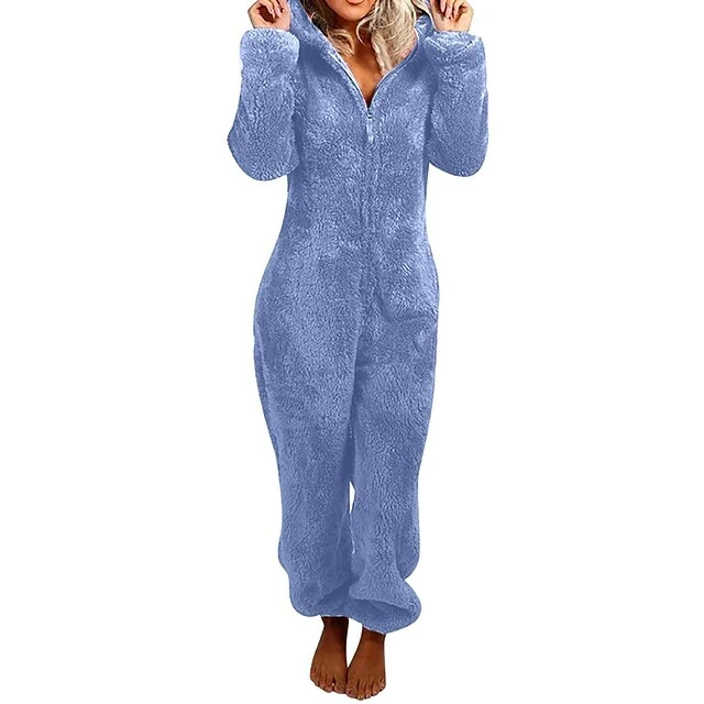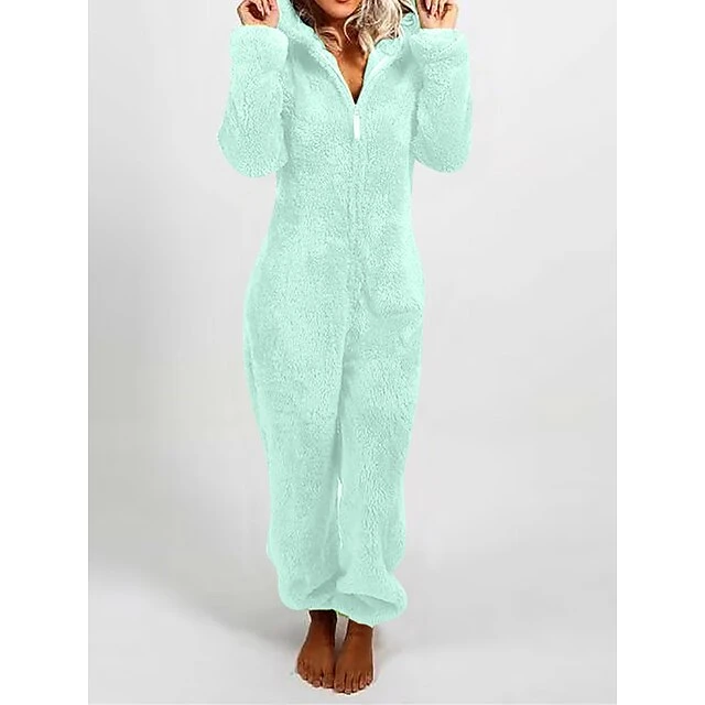Women’s Onesie Pure Color Plush Casual Comfort Home Daily Bed Polar Fleece Warm Hoodie Long Sleeve Fall Winter Light Pink Claret