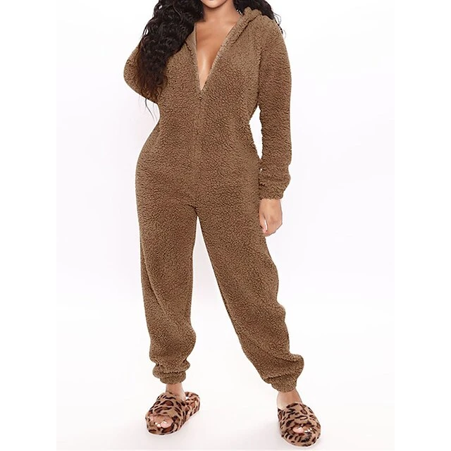 Women’s Onesie Pure Color Plush Casual Comfort Home Daily Bed Sherpa Warm Hoodie Long Sleeve Fall Winter Black Pink
