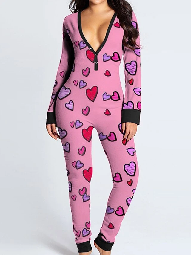 Women’s Onesies Pajama For Adult Jumpsuits Nighty Heart Fashion Simple Comfort Home Daily BedBreathable Gift V Wire Long Sleeve Fall Spring Green Pink / Pjs / Print