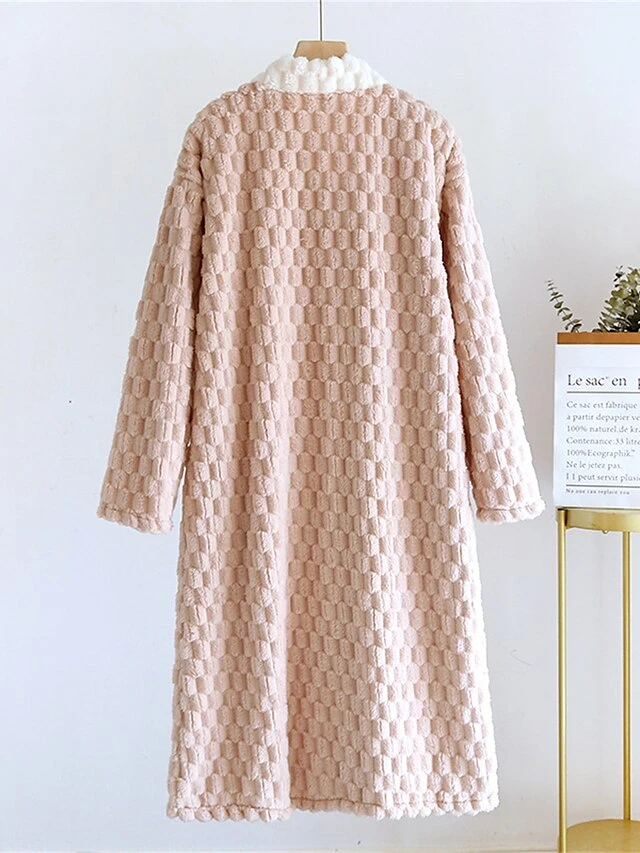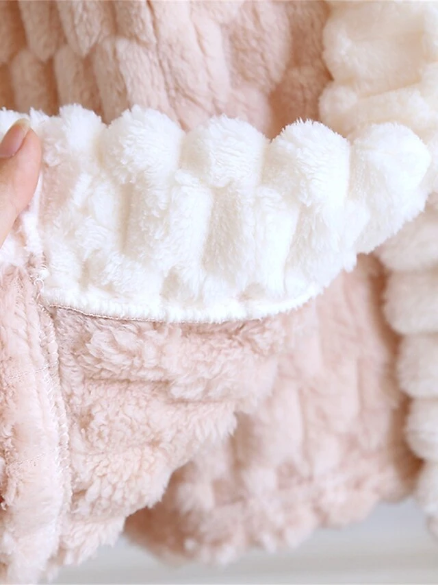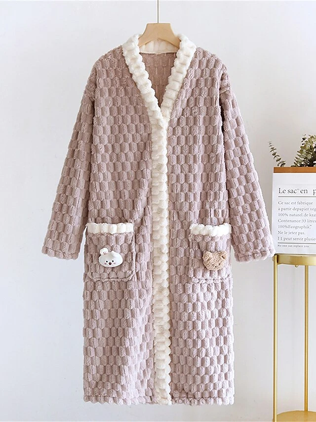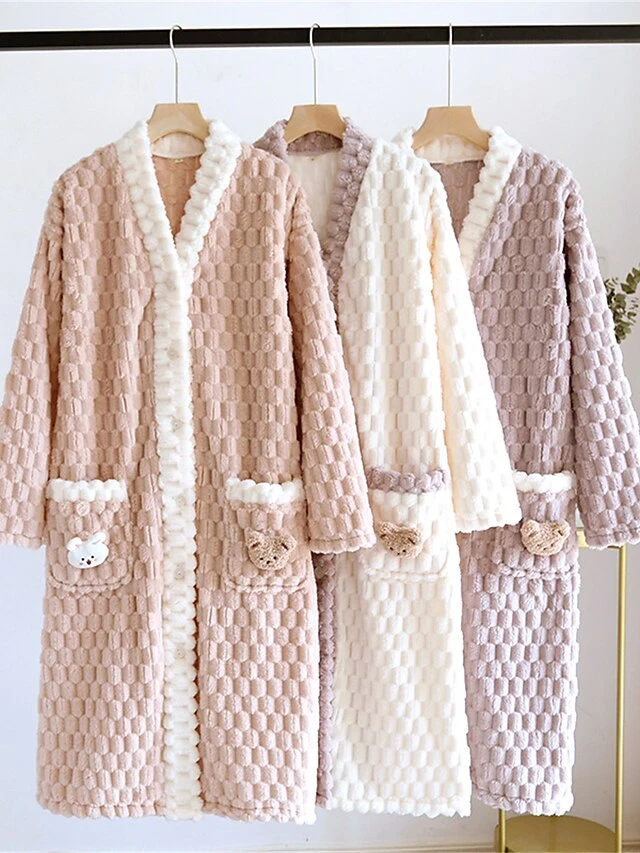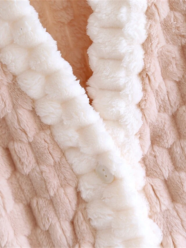 Women’s Pajamas Bathrobe Animal Simple Plush Casual Home Bed Wedding Party Flannel Warm Breathable V Wire Long Sleeve Button Pocket Fall Winter Pink Purple