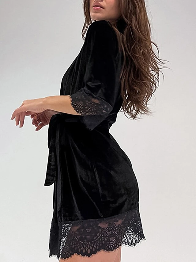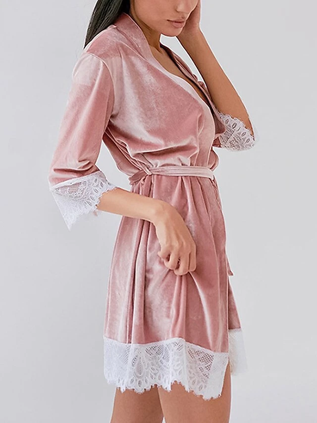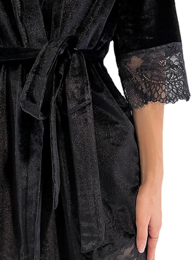 Women’s Pajamas Bathrobe Robes Gown Pure Color Simple Casual Comfort Home Daily Bed Velvet Breathable V Wire Half Sleeve Belt Included Fall Winter Black Pink