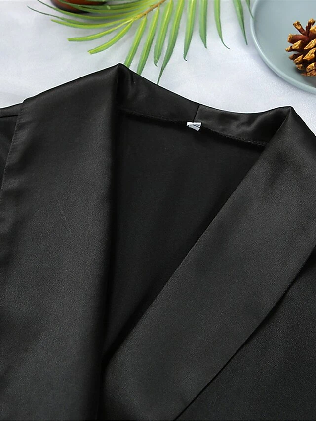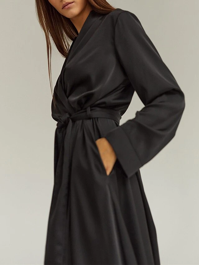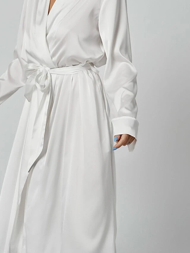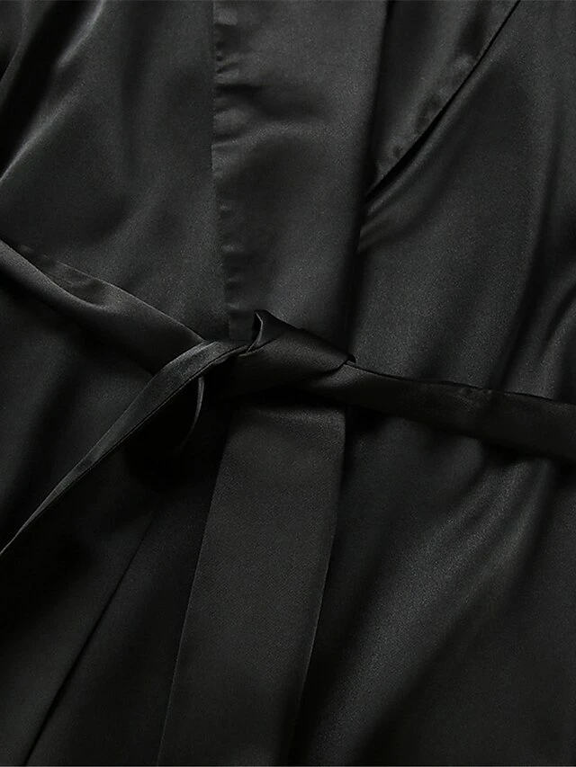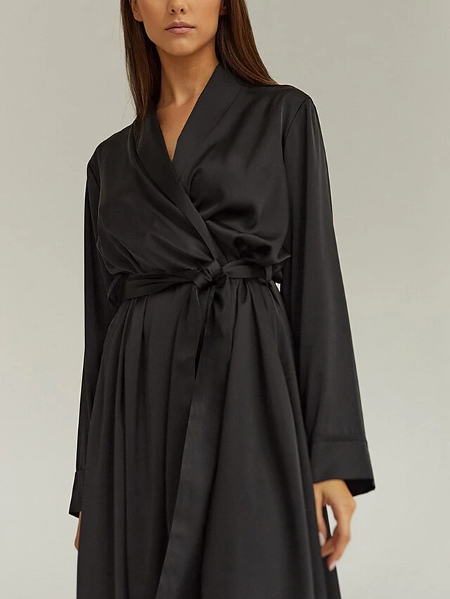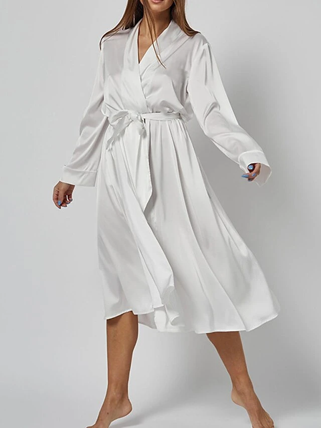 Women’s Pajamas Bathrobe Robes Gown Pure Color Simple Casual Comfort Wedding Party Satin Breathable V Wire Long Sleeve Pocket Summer Fall Black White