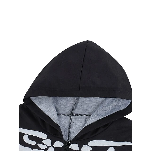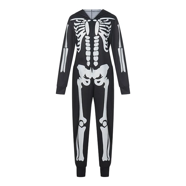 Women’s Pajamas Jumpsuit Skeleton Retro Gothic Punk & Gothic Halloween Carnival Polyester Breathable Hoodie Long Sleeve Fall Winter Black
